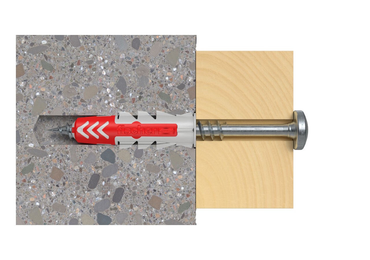 La DuoPower offre de très bonnes résistances grâce à ses 2 composants : le composant gris en nylon haute qualité active automatiquement le mode de fonctionnement optimal en fonction du matériau de construction (s'expanse, se déploie, forme un noeud) pour une tenue optimale. Les ailettes d'expansion du composant rouge aident à une expansion sûre et apportent une sécurité supplémentaire au composant gris. Pour finir, vissage facile de la vis et bonne perception du couple de blocage. Pas de rotation de la vis. La collerette évite le glissement de la cheville dans le forage.
