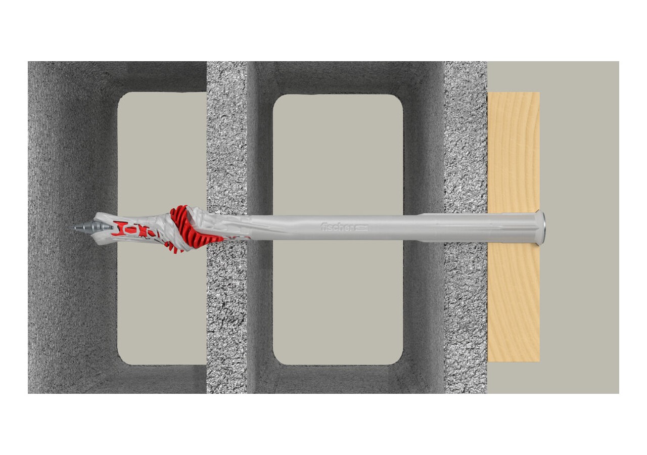 Dans les briques perforées, les lamelles s’expansent au niveau des parois et créent un verrouillage de forme dans les cavités. La géométrie de la cheville garantit une expansion douce dans le matériau de construction évitant ainsi d’endommager les parois des matériaux creux.