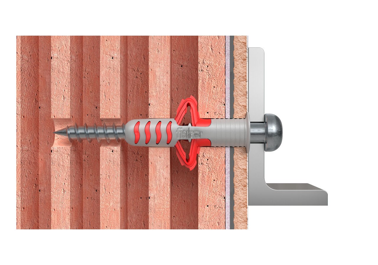 Le composant rouge en nylon de haute qualité s’adapte automatiquement au support (s’expanse, se déploie, forme un noeud) qu’il soit plein, creux ou en plaque.