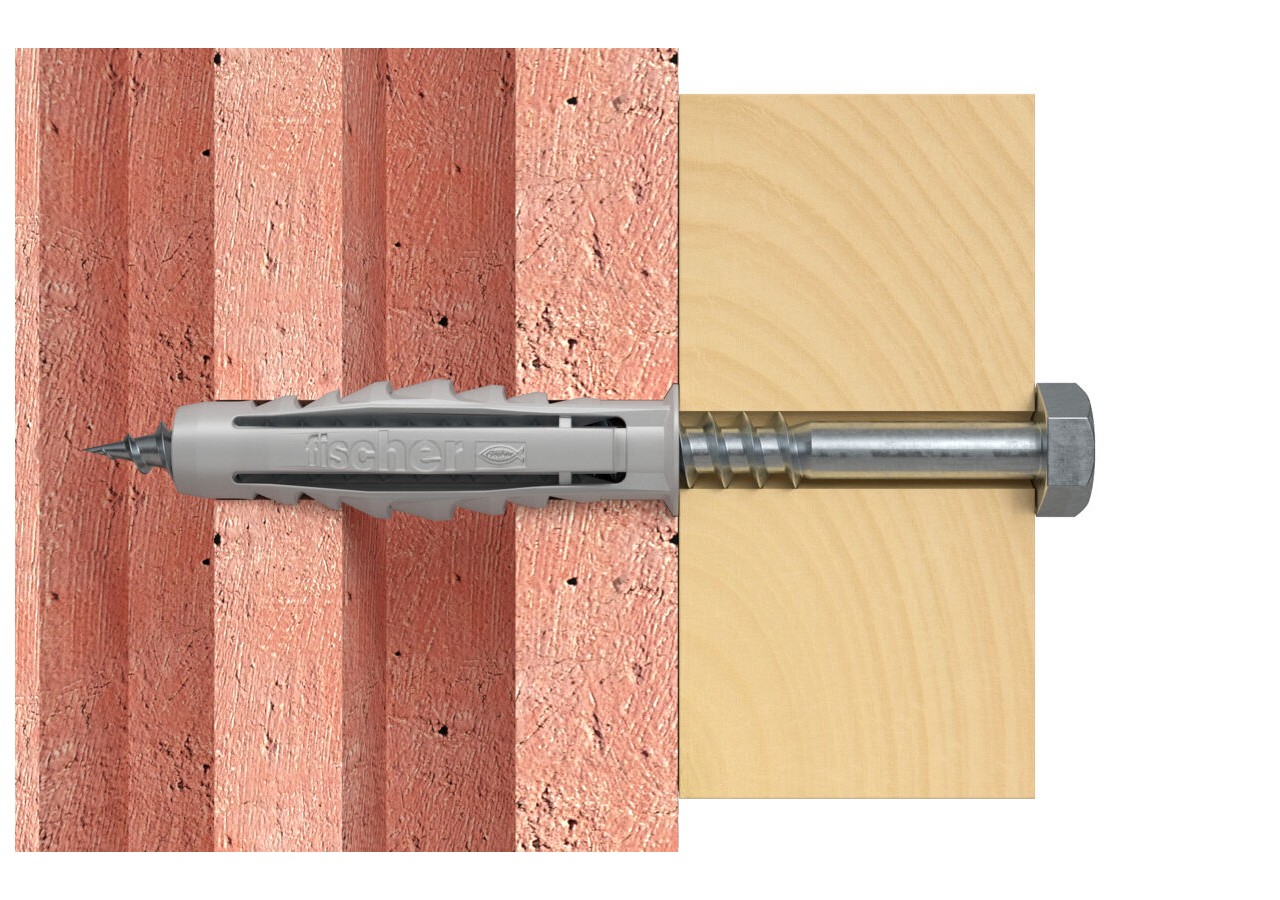 La quadruple expansion permet une transmission optimale des forces dans le matériau de construction et offre des capacités de charge élevées dans les matériaux pleins et creux. La partie lisse sous tête ne s'expanse pas et évite l'apparition de contraintes d'expansion à la surface du matériau de contruction lors du vissage. Ceci évite d'endommager le carrelage et le plâtre. L'importante collerette empêche la cheville de glisser dans le trou et permet un montage simple.