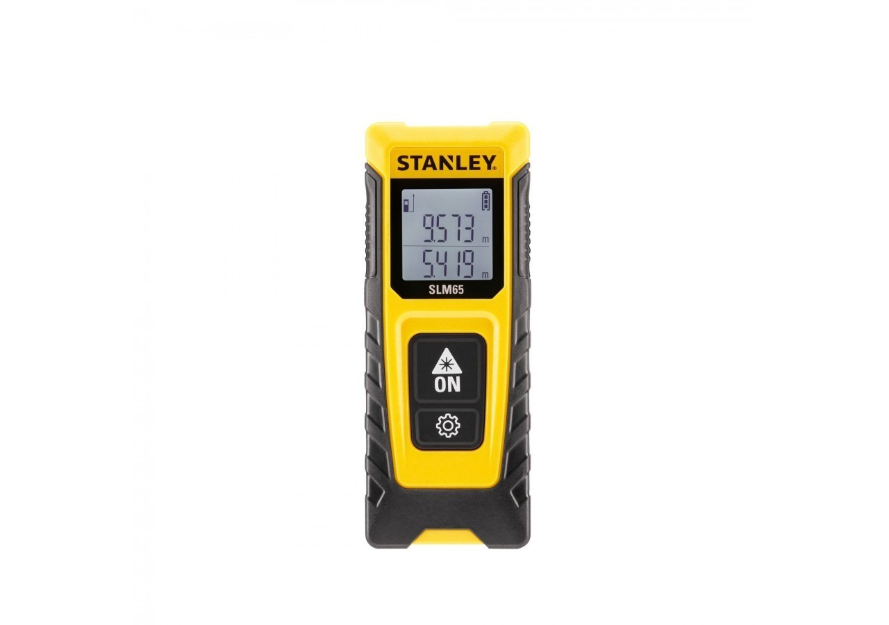 - Grâce à sa portée de 20 m, la mesure laser STANLEY® SLM65 vous permet de réaliser toutes vos mesures. Ce télémètre facile d’utilisation ne possède que 2 boutons : un pour allumer l’appareil et prendre des mesures et un pour sélectionner les différentes fonctions. Avec son écran LCD blanc avec lettres noires, le SLM65 offre une lisibilité exceptionnelle, même dans les environnements très lumineux. Il offre la possibilité de changer le point de départ de la mesure (depuis le haut ou le bas de l’appareil) pour vous offrir la précision et la flexibilité dont vous avez besoin. Robuste et fiable, la mesure laser STANLEY® SLM65 possède un revêtement grip pour une excellente prise en main. Cette mesure laser polyvalente est équipée d’un écran qui permet de visualiser les 2 dernières mesures et un mode économie d’énergie qui protège les piles en éteignant automatiquement le laser après 120 secondes et l’écran après 180 secondes sans utilisation.