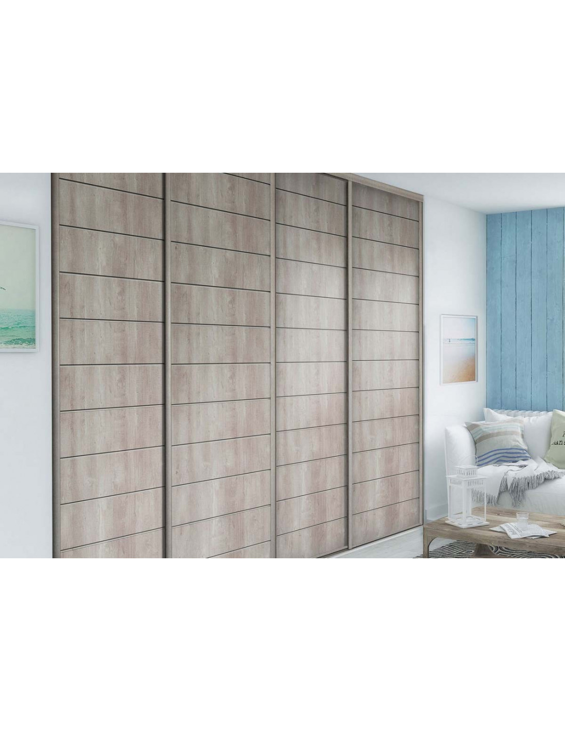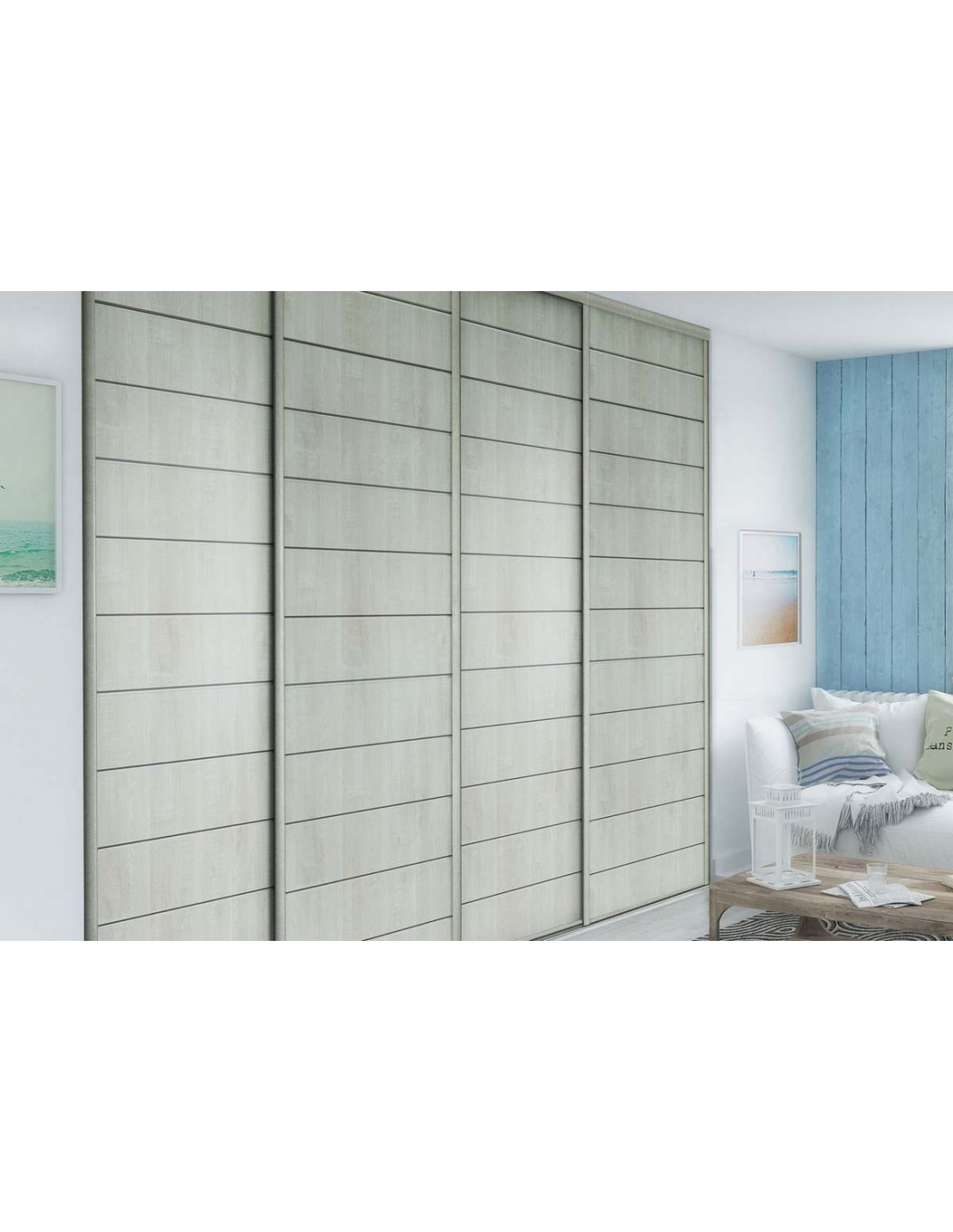 Cette façade de placard est composée de portes coulissantes en kabourg.