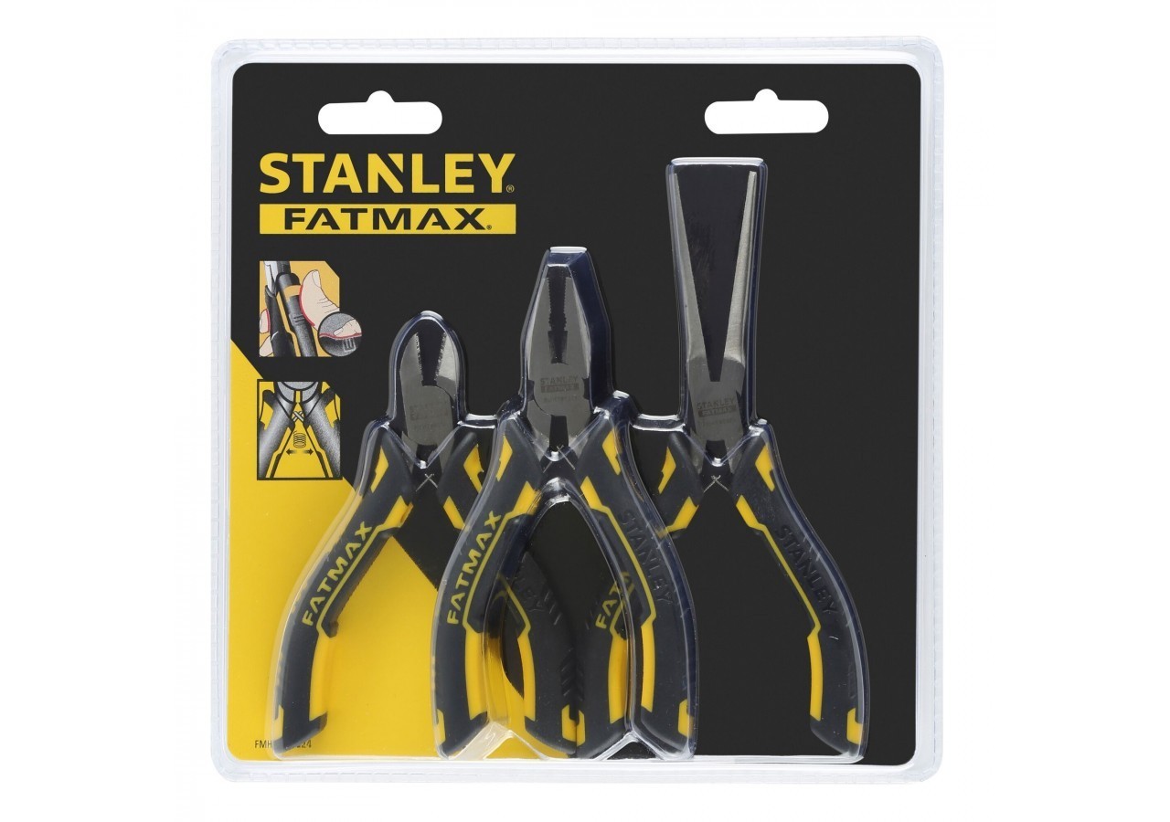 - Composition : mini pince universelle 120 mm fatmax (FMHT0-80516 ), mini pince coupante diagonale d’électricien 110 mm fatmax (FMHT0-80518), mini pince à becs 1/2 ronds extra longs 150 mm fatmax (FMHT0-80520)