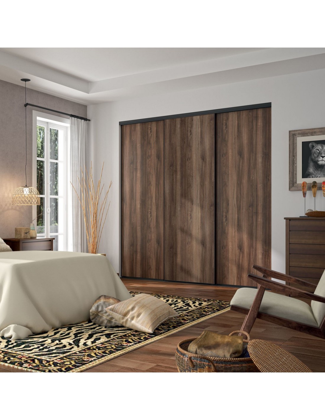 Cette façade de placard est composée de portes coulissantes en mélaminé .