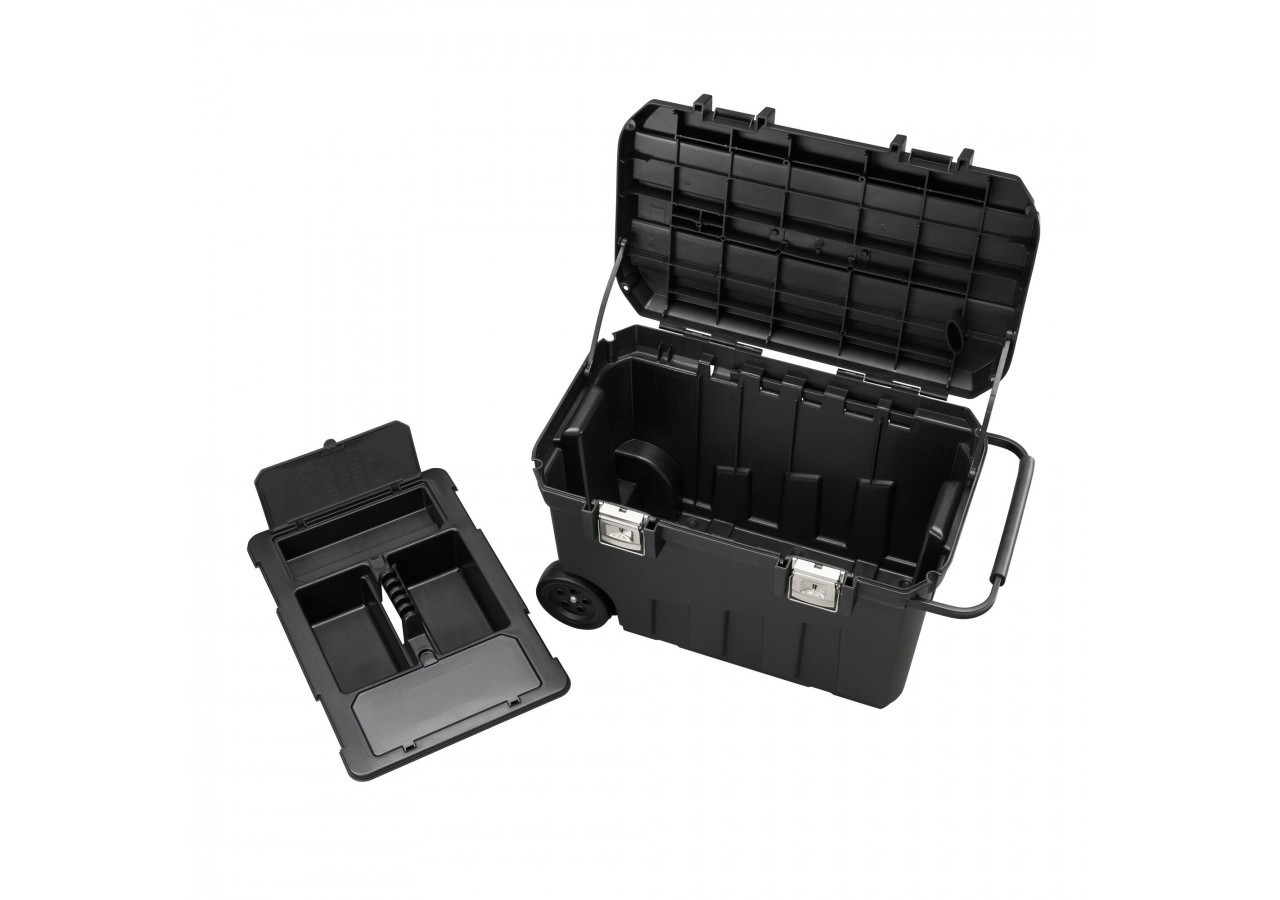 - Couvercle aménagé pour le rangement d’un niveau et d’une scie à main