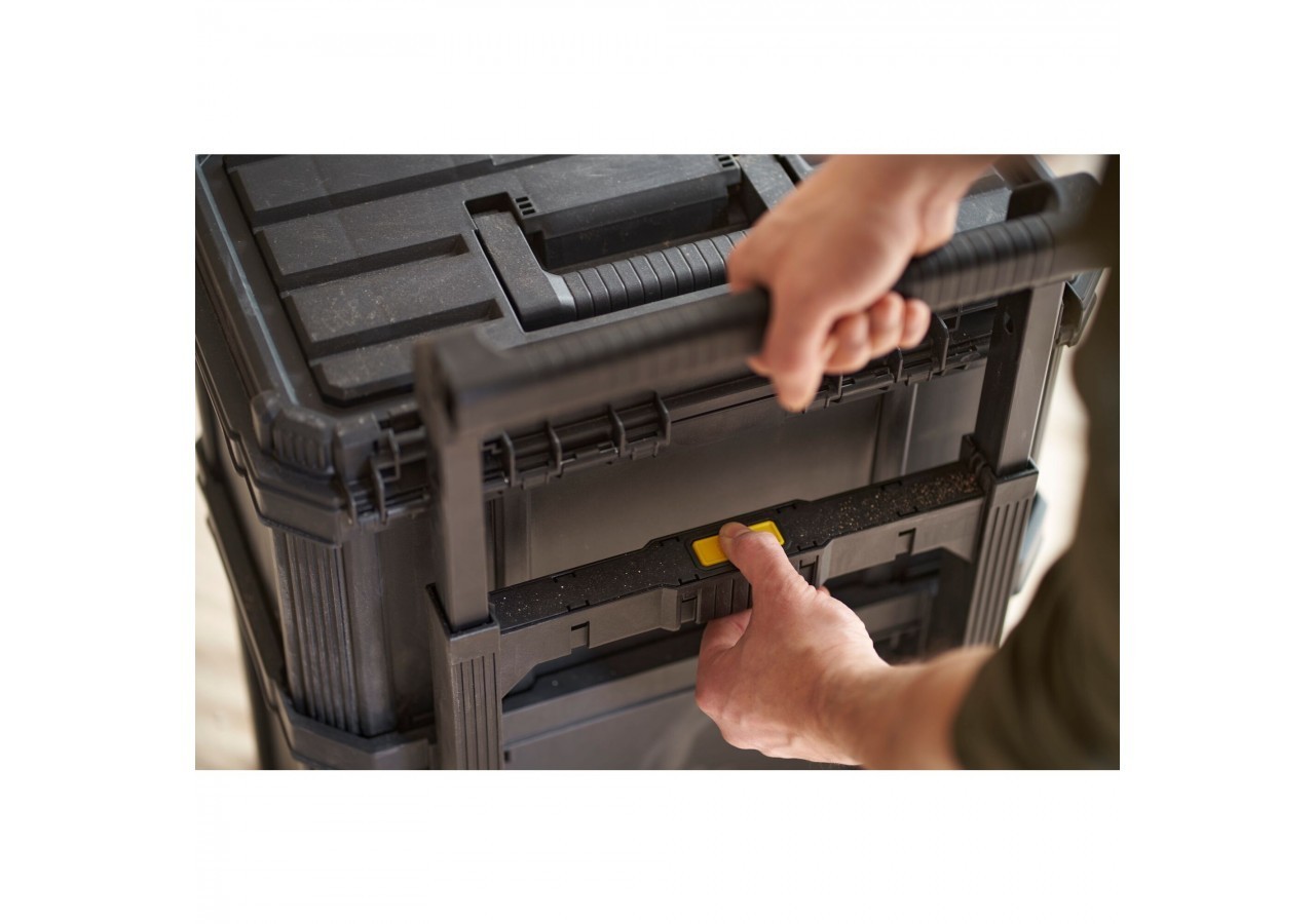 - COMPLÈTE ET POLYVALENTE : Boîte à outils compacte + Boîte à outils profonde avec porte-outils intégré + Coffre de chantier Maxi Volume
