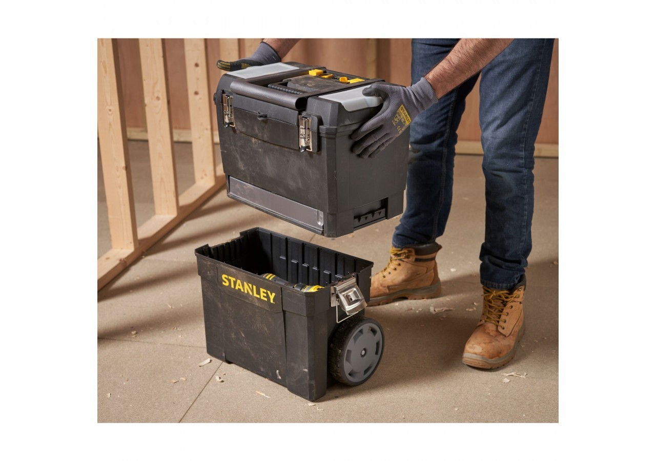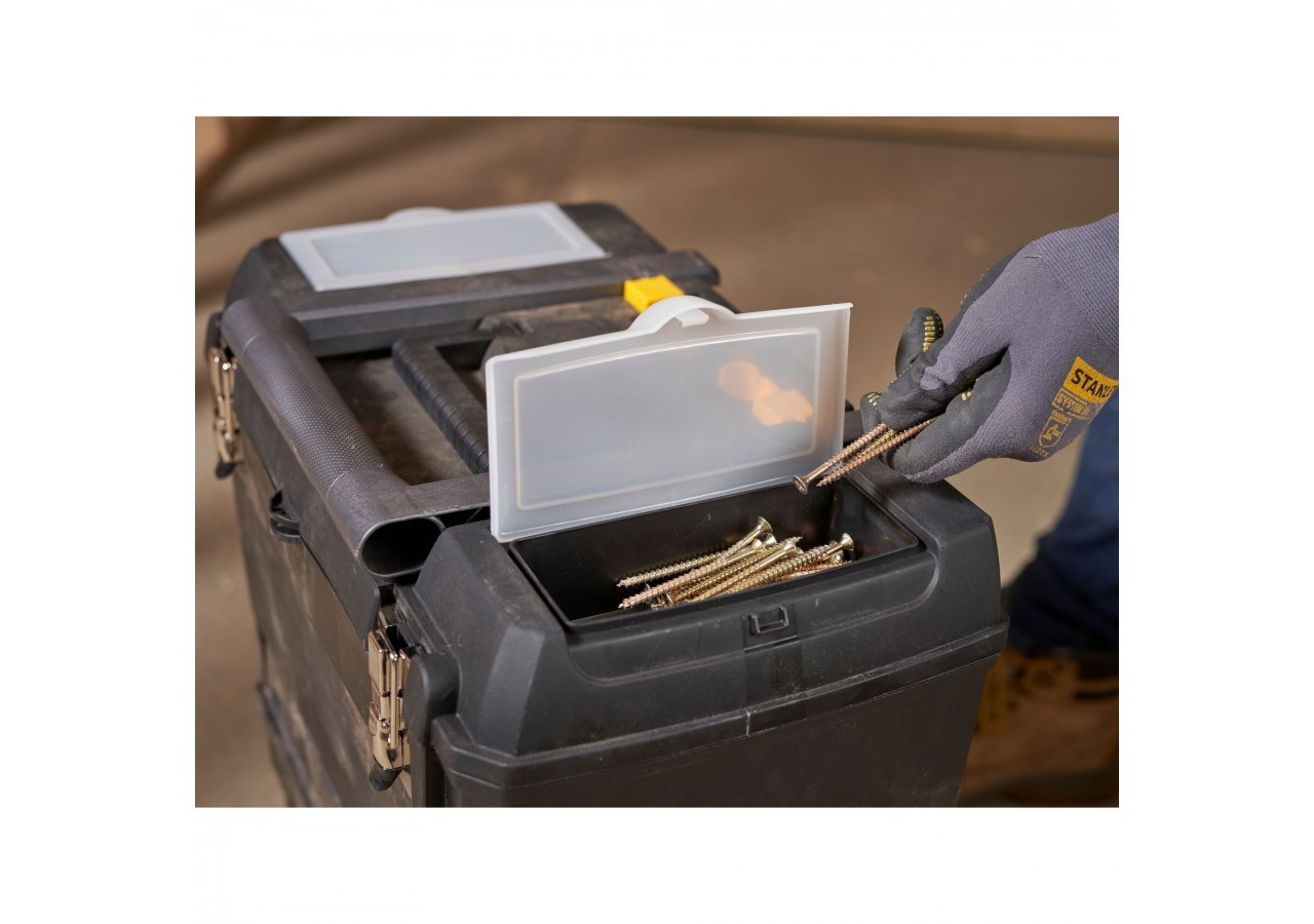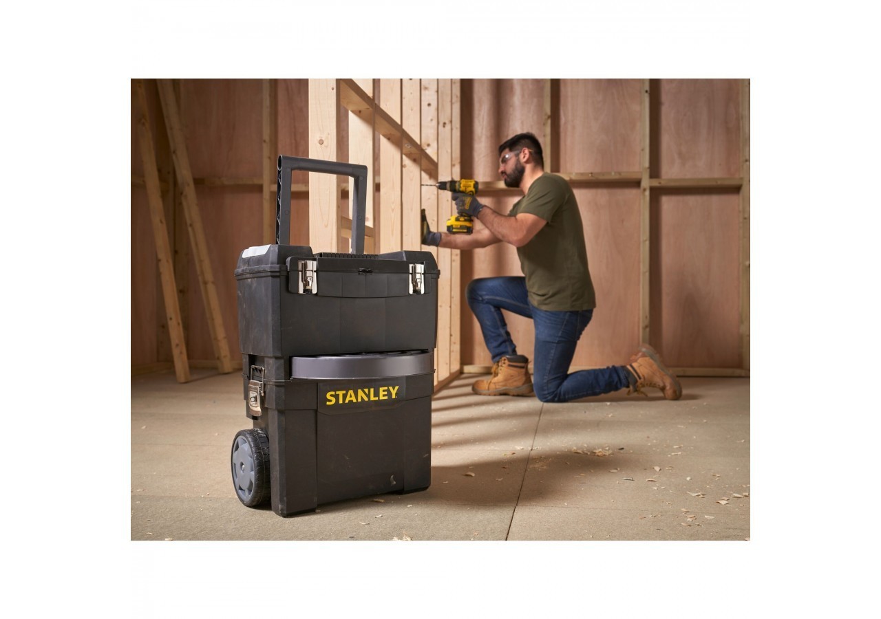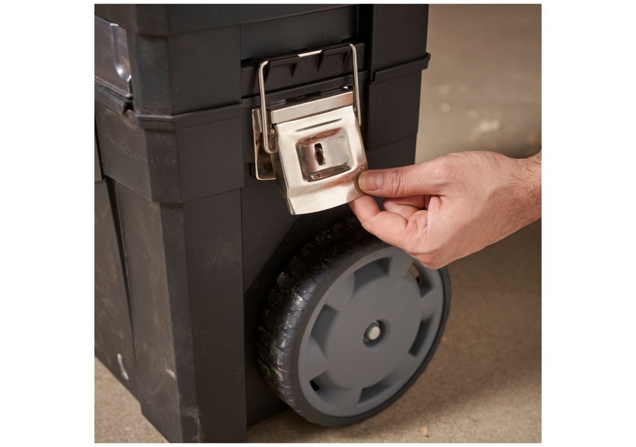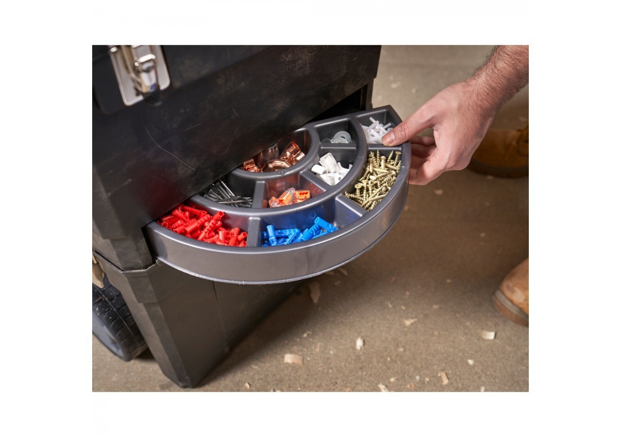 - Éléments autonomes 3 en 1 : maxi boîte à outils + coffre de rangement électroportatif + carrousel rotatif
