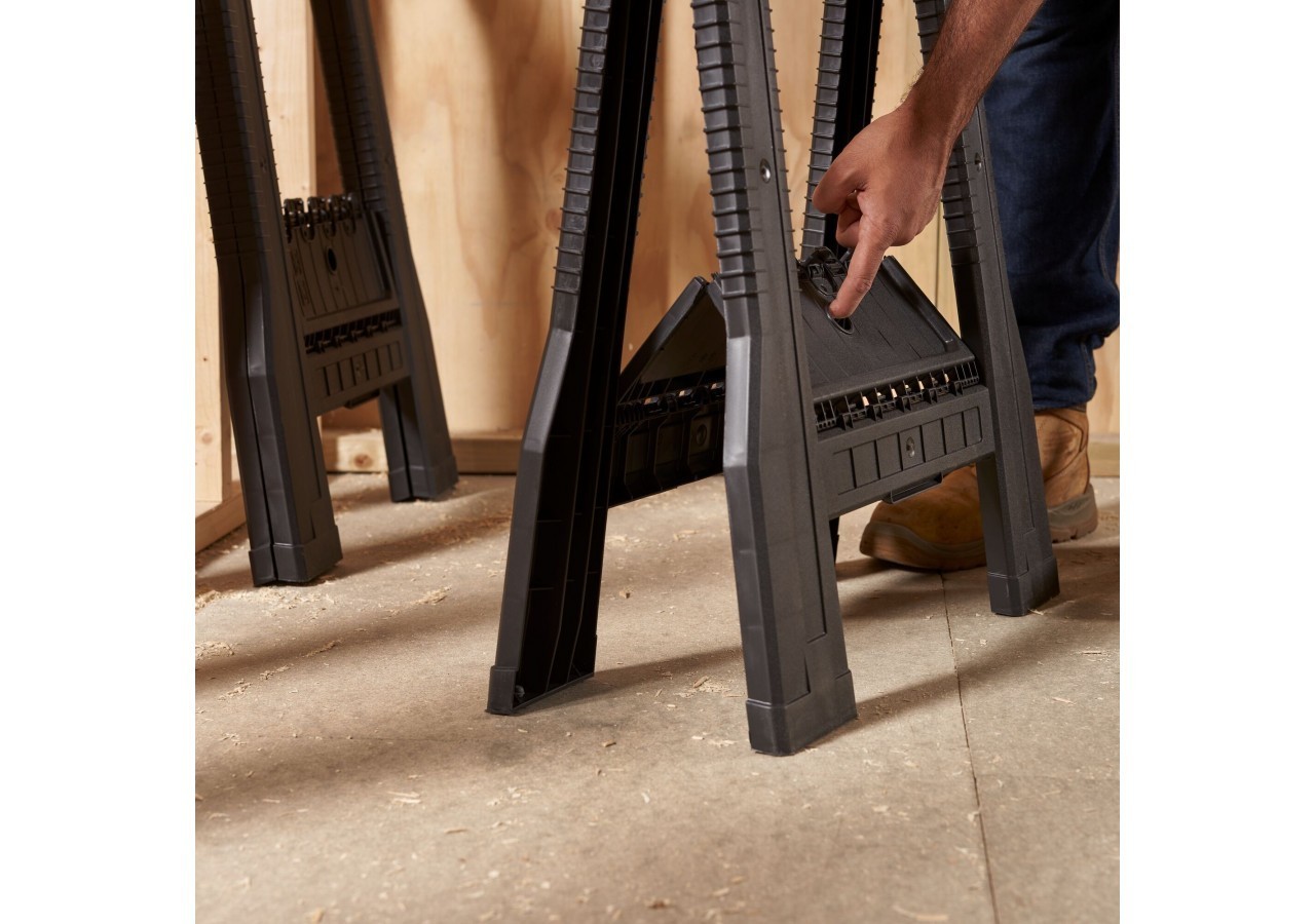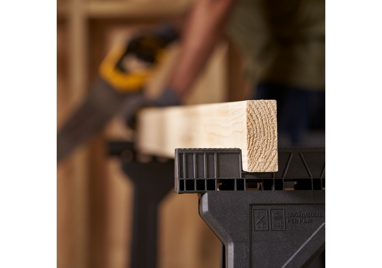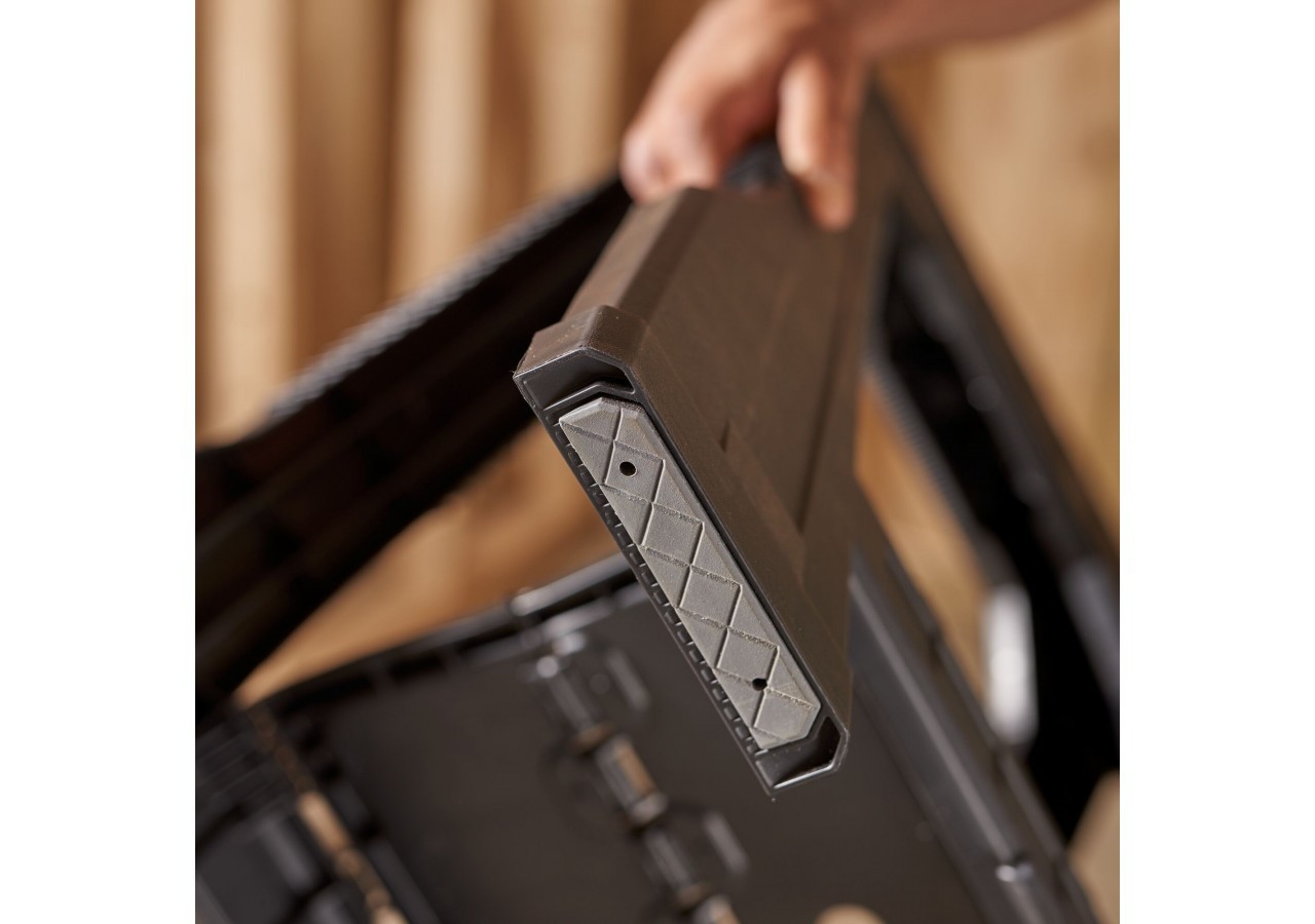 - Rainure en V : guide de maintien de pièces posées sur le tréteau