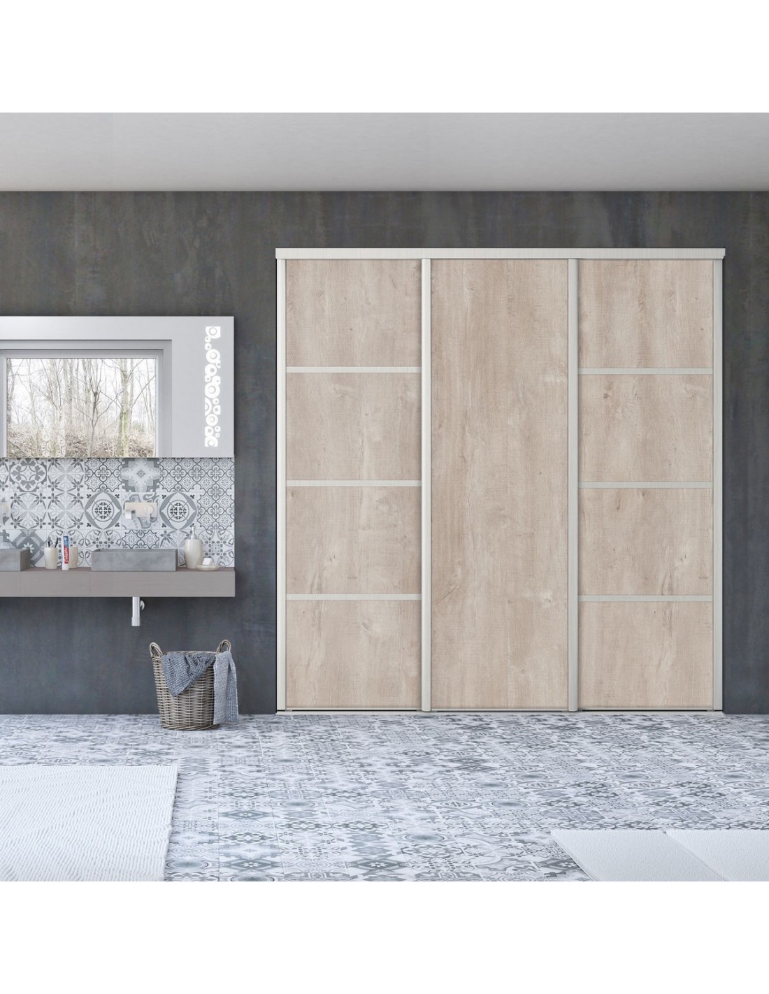 Façade de placard coulissante 3 portes Sainte Colombe mélaminé bois - Kazed : Confort'Mat
