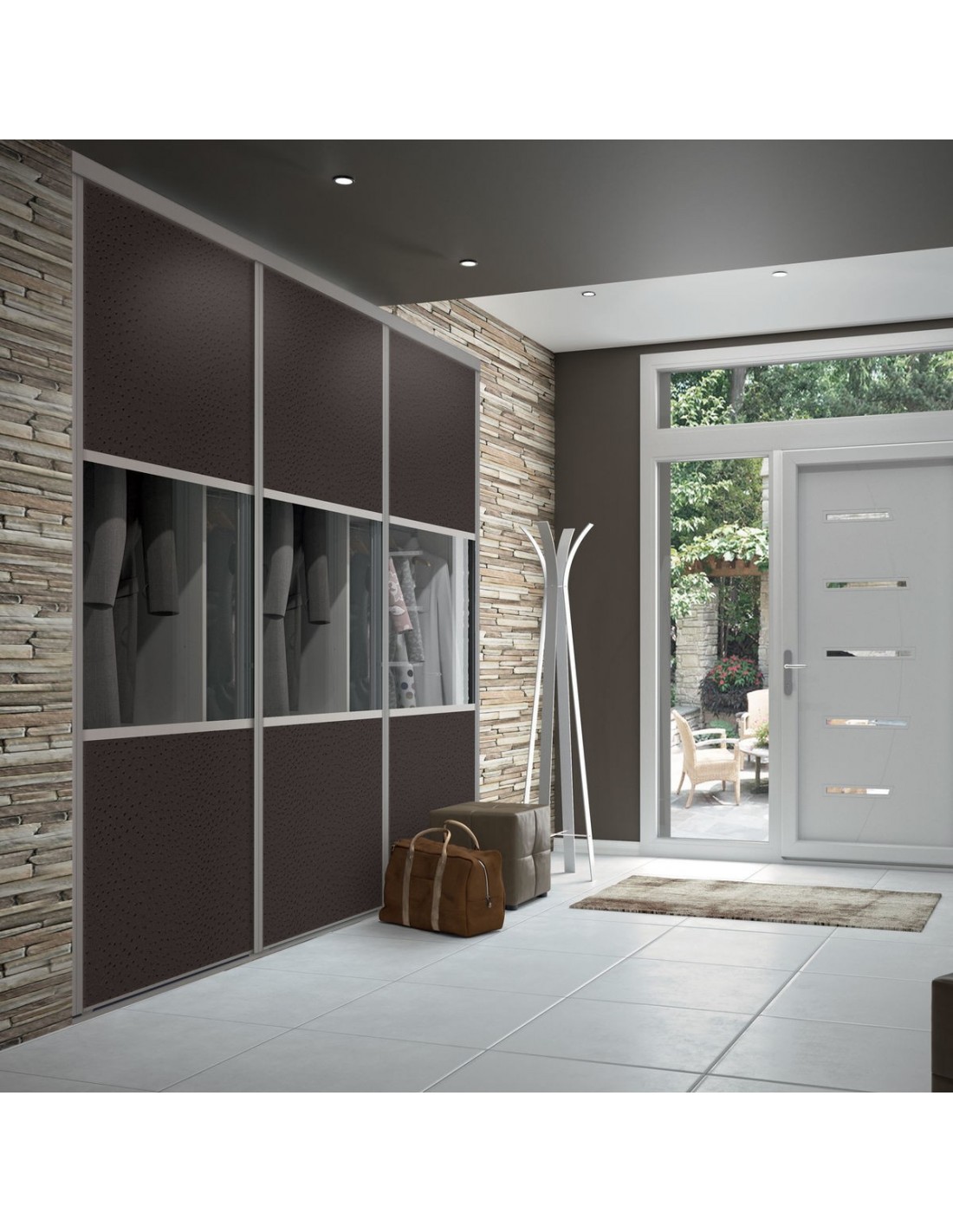 Façade de placard coulissante 3 portes Opale en effet cuir - Kazed : Confort'Mat
