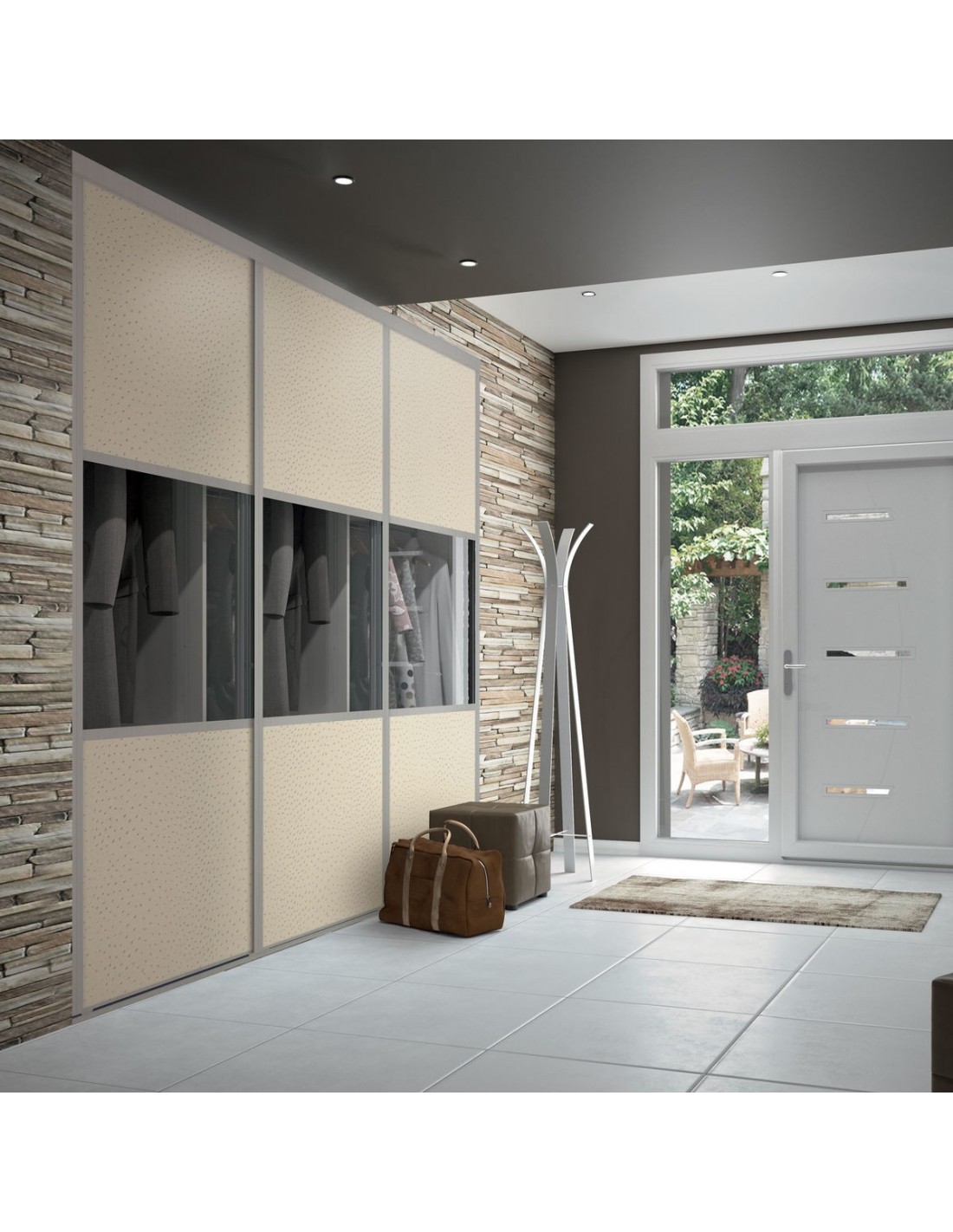 Façade de placard coulissante 3 portes Opale en effet cuir - Kazed : Confort'Mat