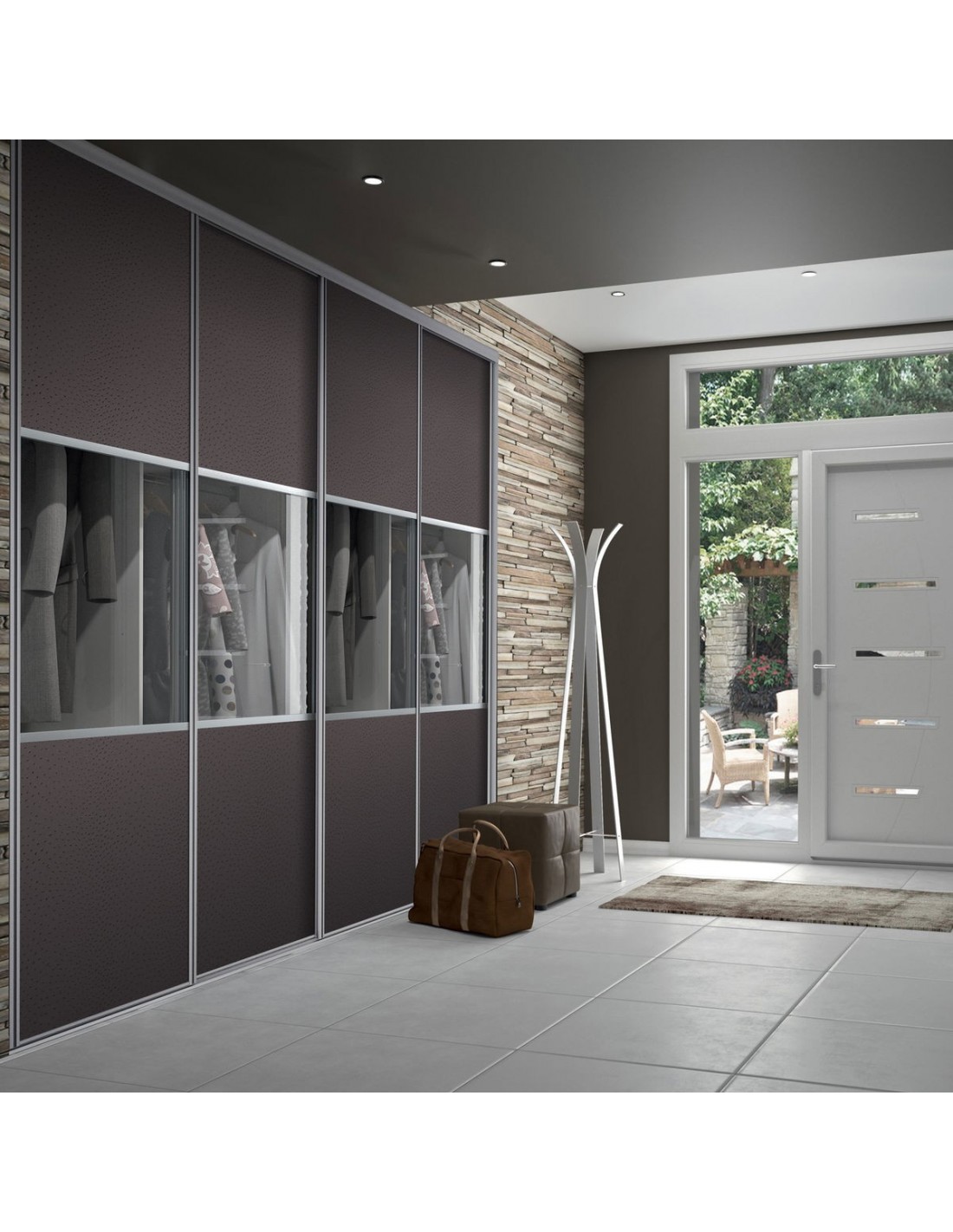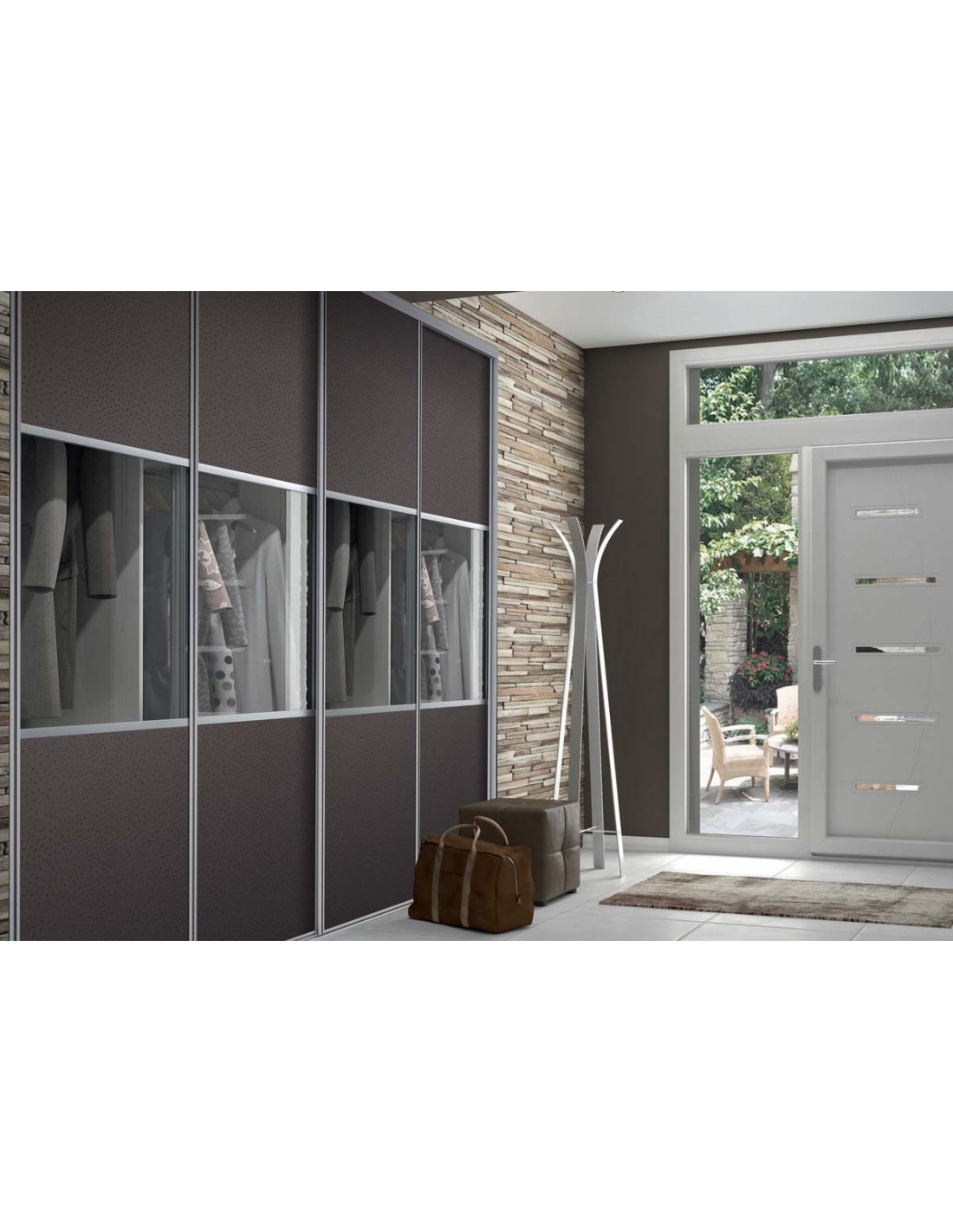 Façade de placard coulissante 4 portes Opale en effet cuir - Kazed : Confort'Mat