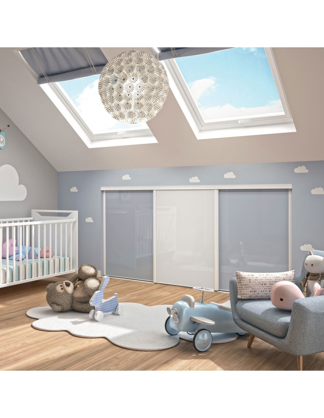 Hugo : Façade de placard coulissante 3 portes décor verre laqué blanc
