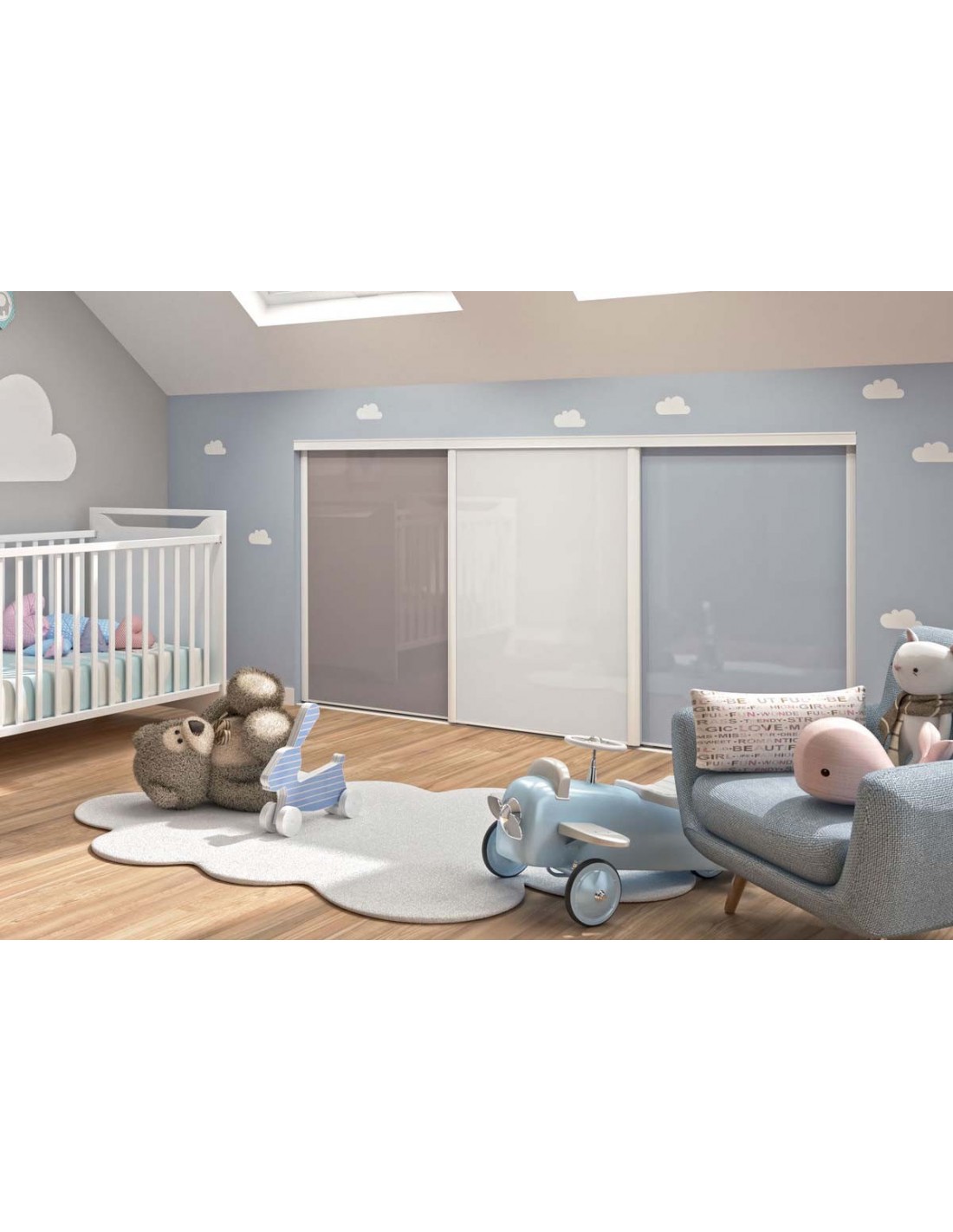 Façade de placard coulissante 3 portes Hugo verre laqué - Kazed : Confort'Mat