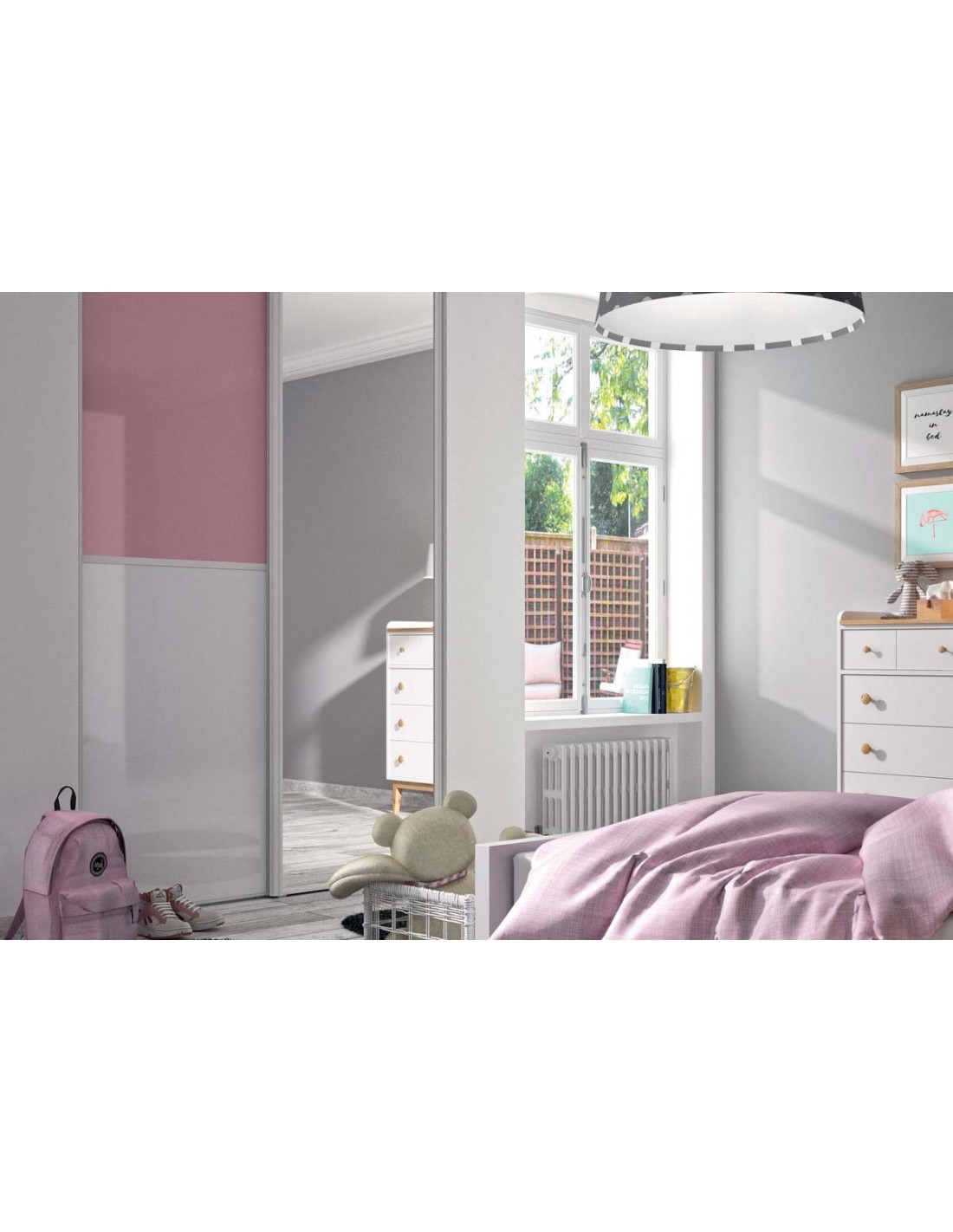 Victoria : Façade de placard coulissante 2 portes miroir et décor verre laqué