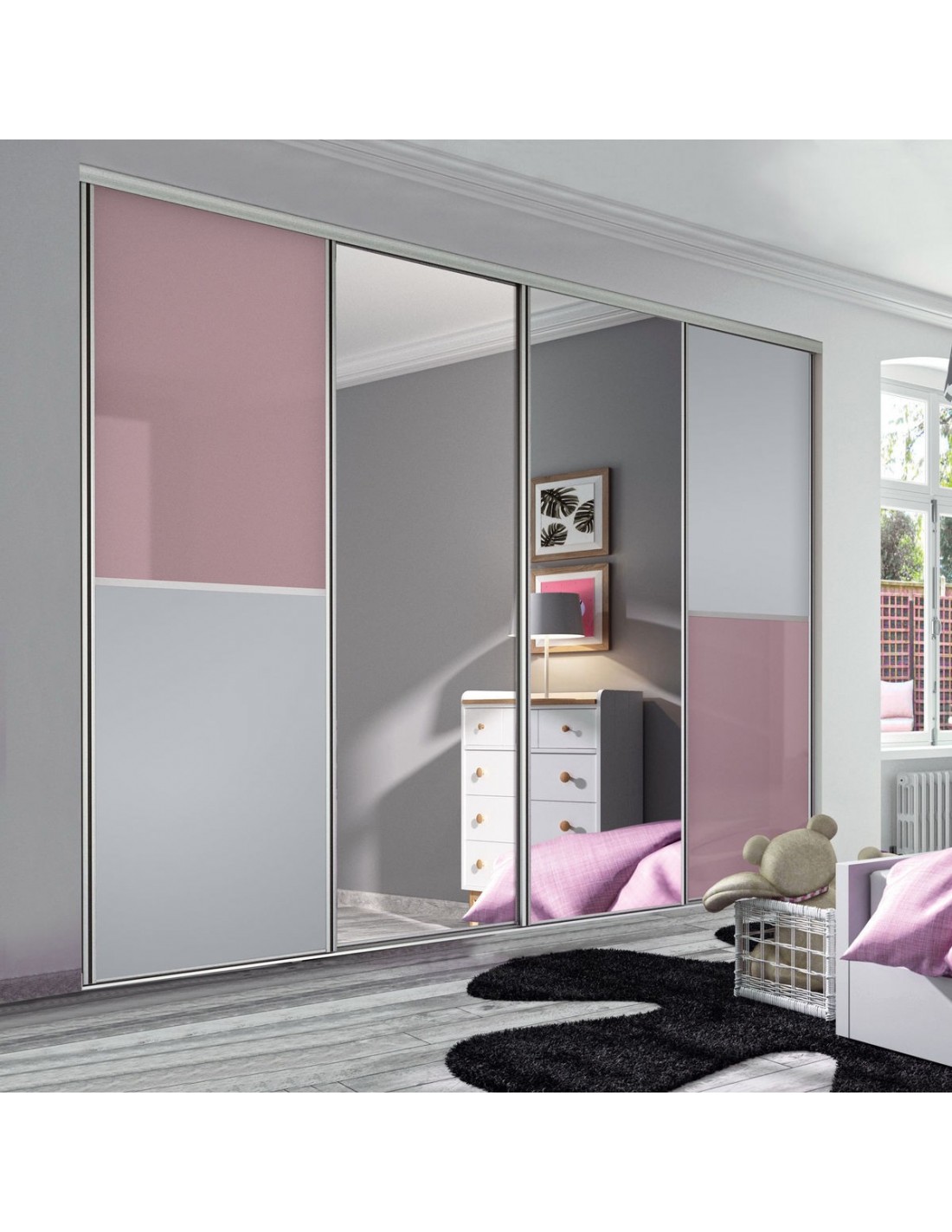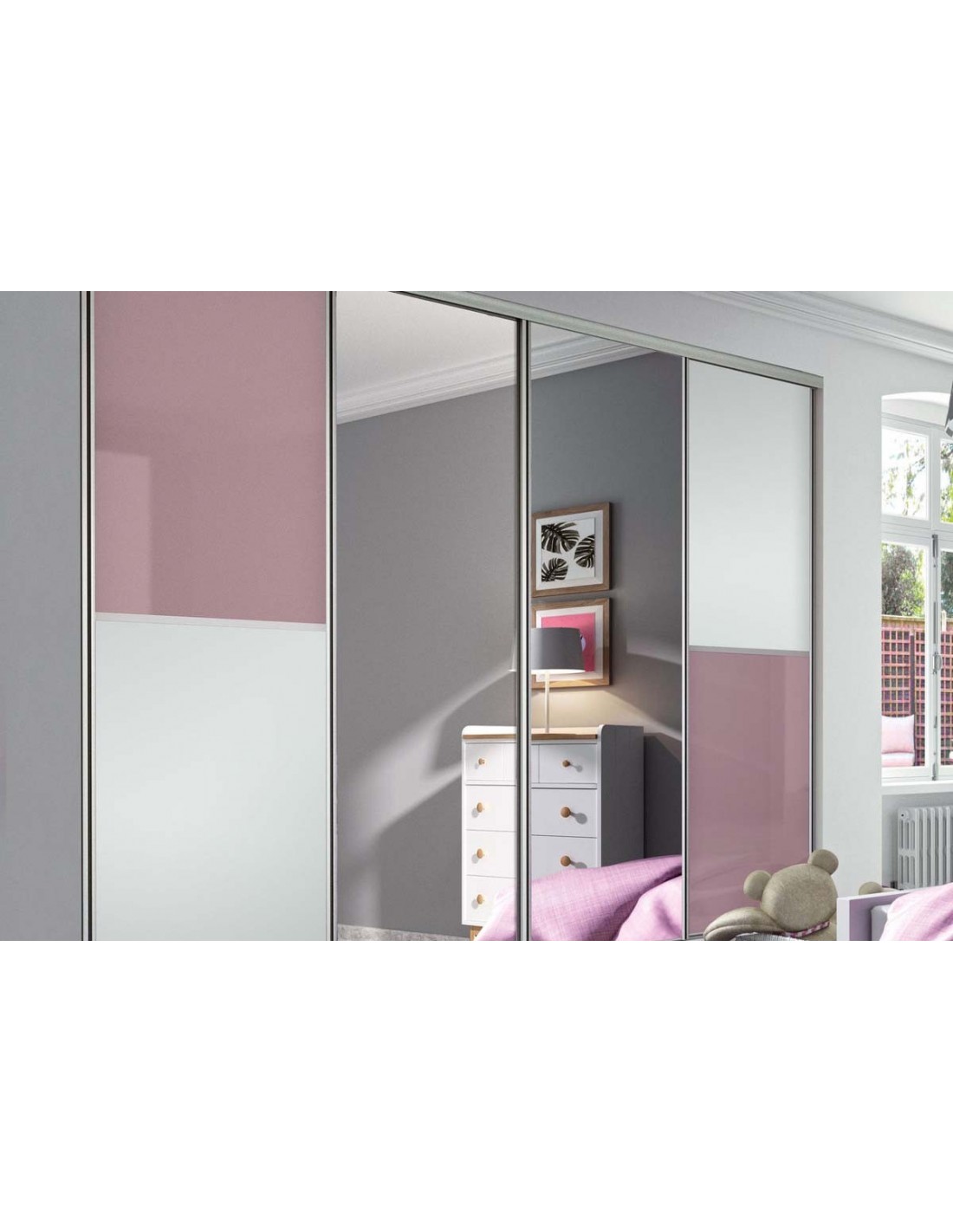 Victoria : Façade de placard coulissante 4 portes miroir et décor verre laqué / mat