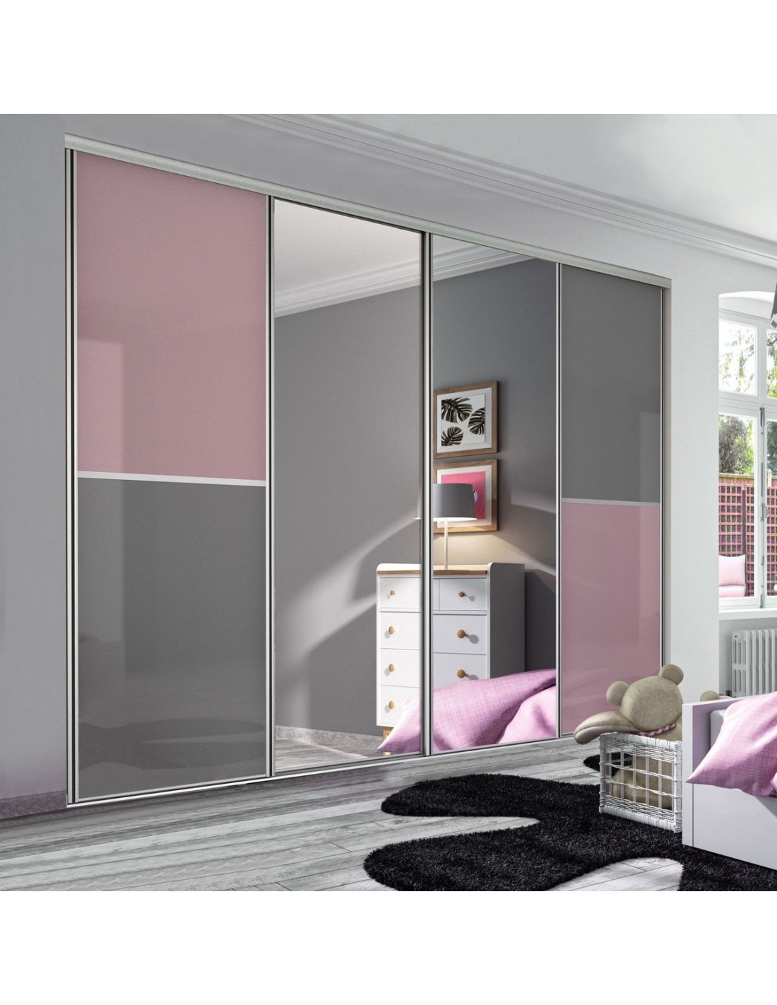 Façade de placard coulissante 4 portes Victoria en verre laqué - Kazed : Confort'Mat