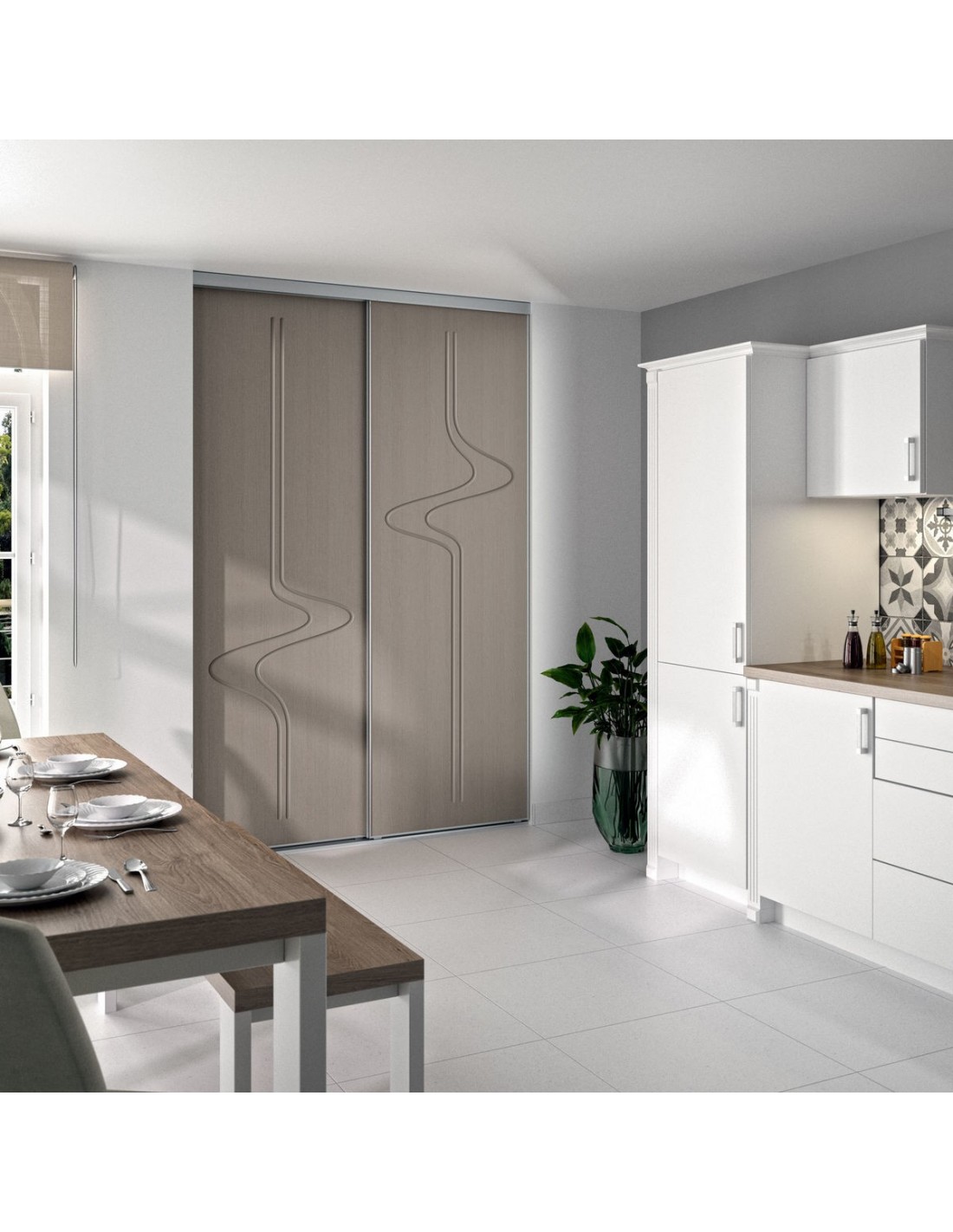 Cette façade de placard est composée de deux portes coulissantes en décors graphic argile glacé.