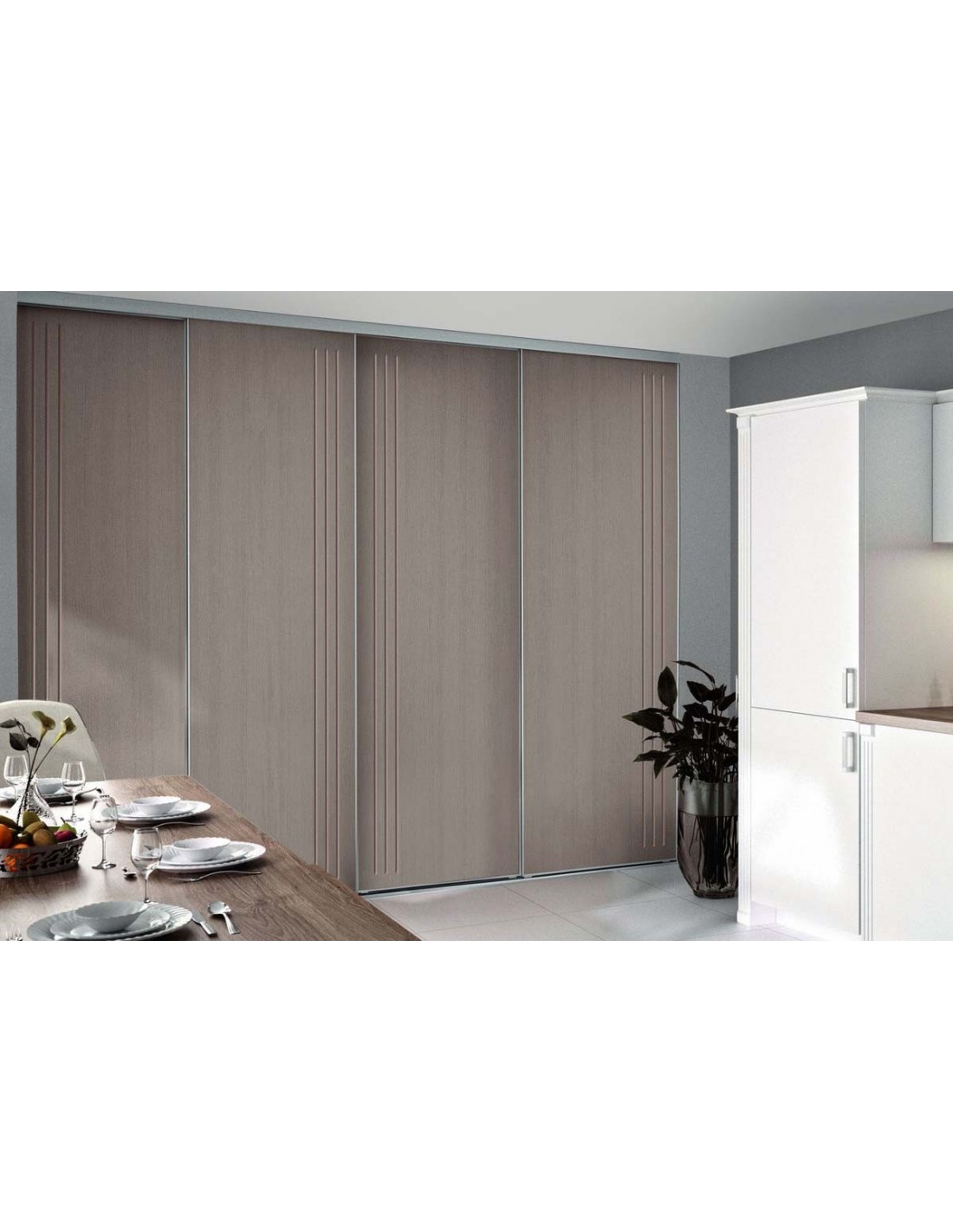 Cette façade de placard est composée de portes coulissantes en décors graphic argile glacé.
