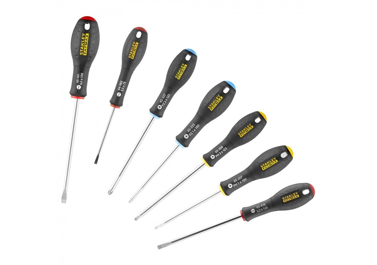 - Jeu de 7 pièces : Electricien 3.5x75, 5.5x125. Mécanicien 6.5x150. Philips PH1x100, PH2x125. Pozi PZ1x100, PZ2x125