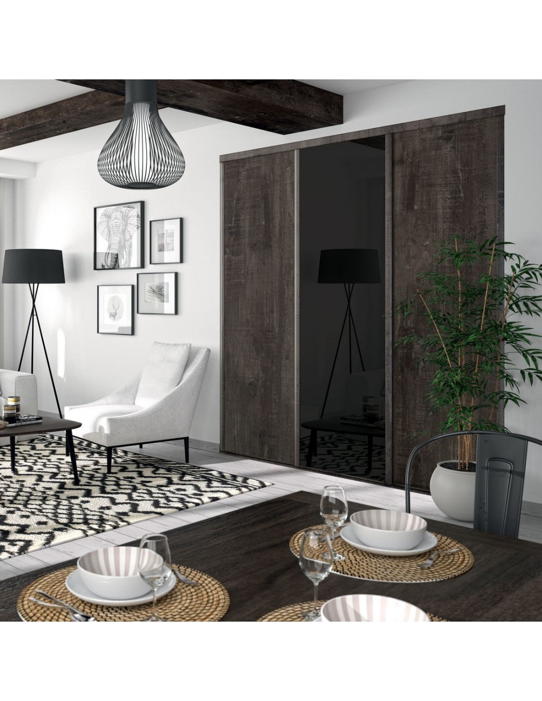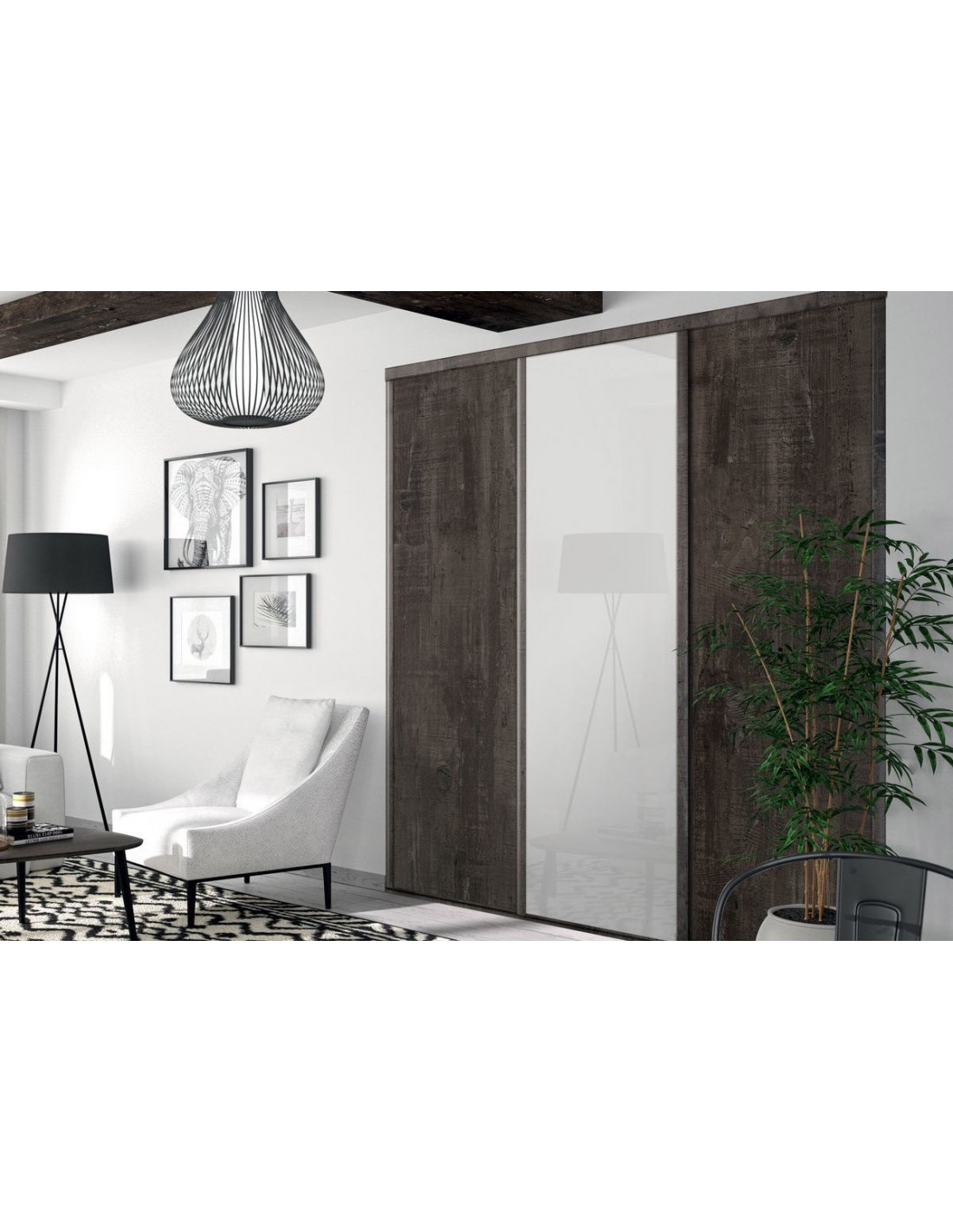Monteverde : Façade de placard coulissante 3 portes bois et verre laqué