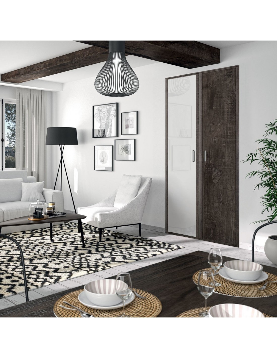 Monteverde : Façade de placard pivotante 2 portes bois et verre laqué