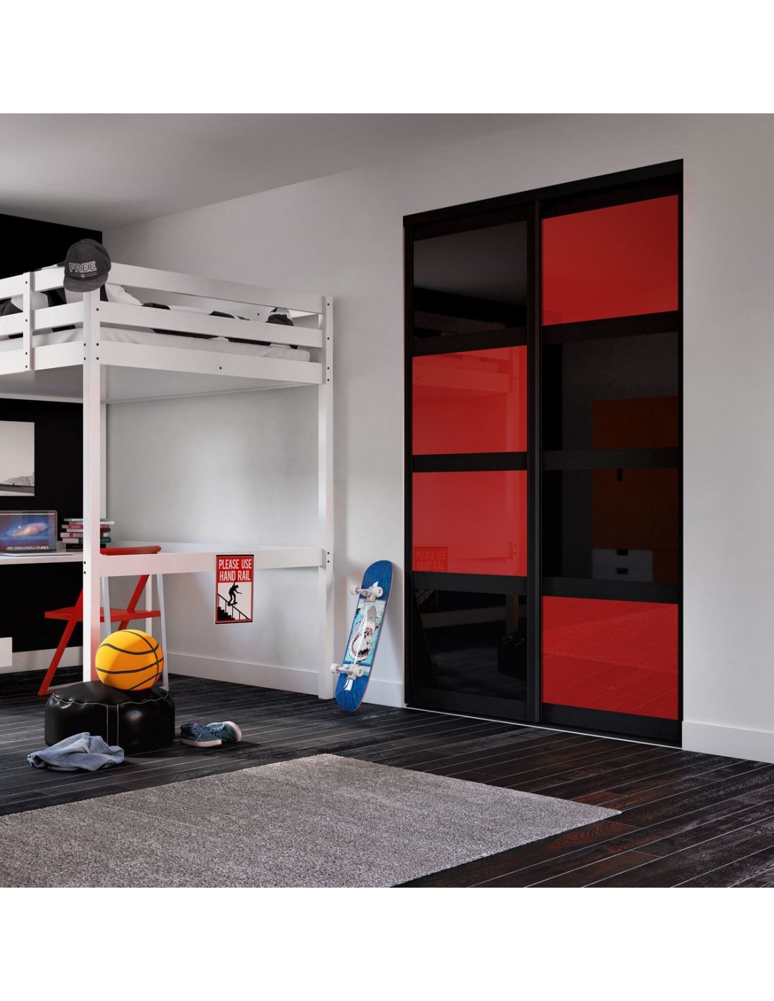 Cette façade de placard est composée de deux portes coulissantes en mélaminé et verre laqué.
