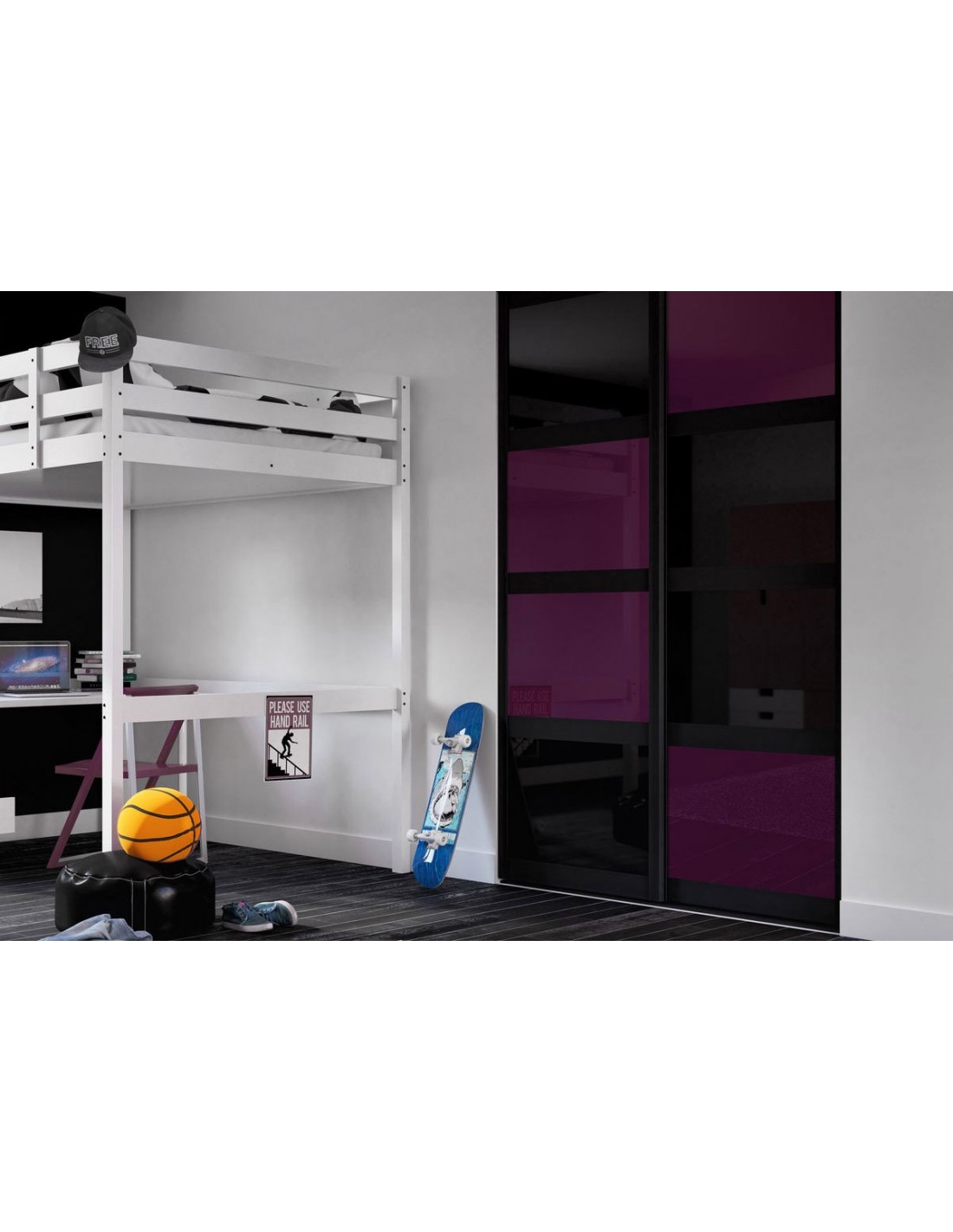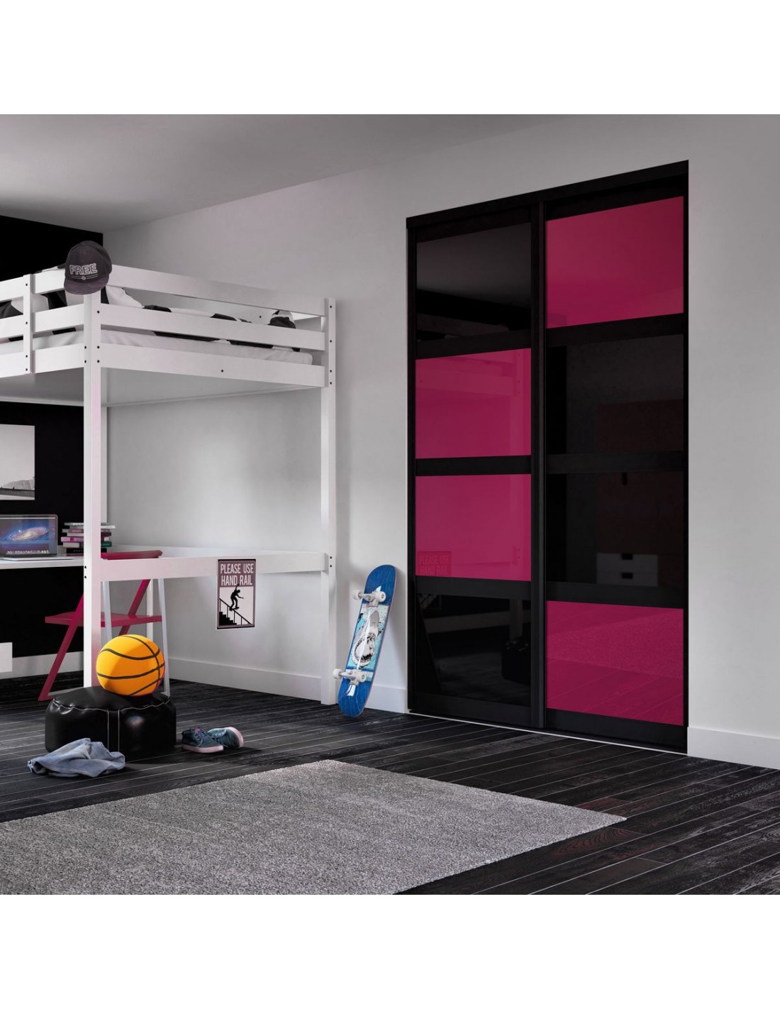 Cette façade de placard est composée de deux portes coulissantes en mélaminé et verre laqué.