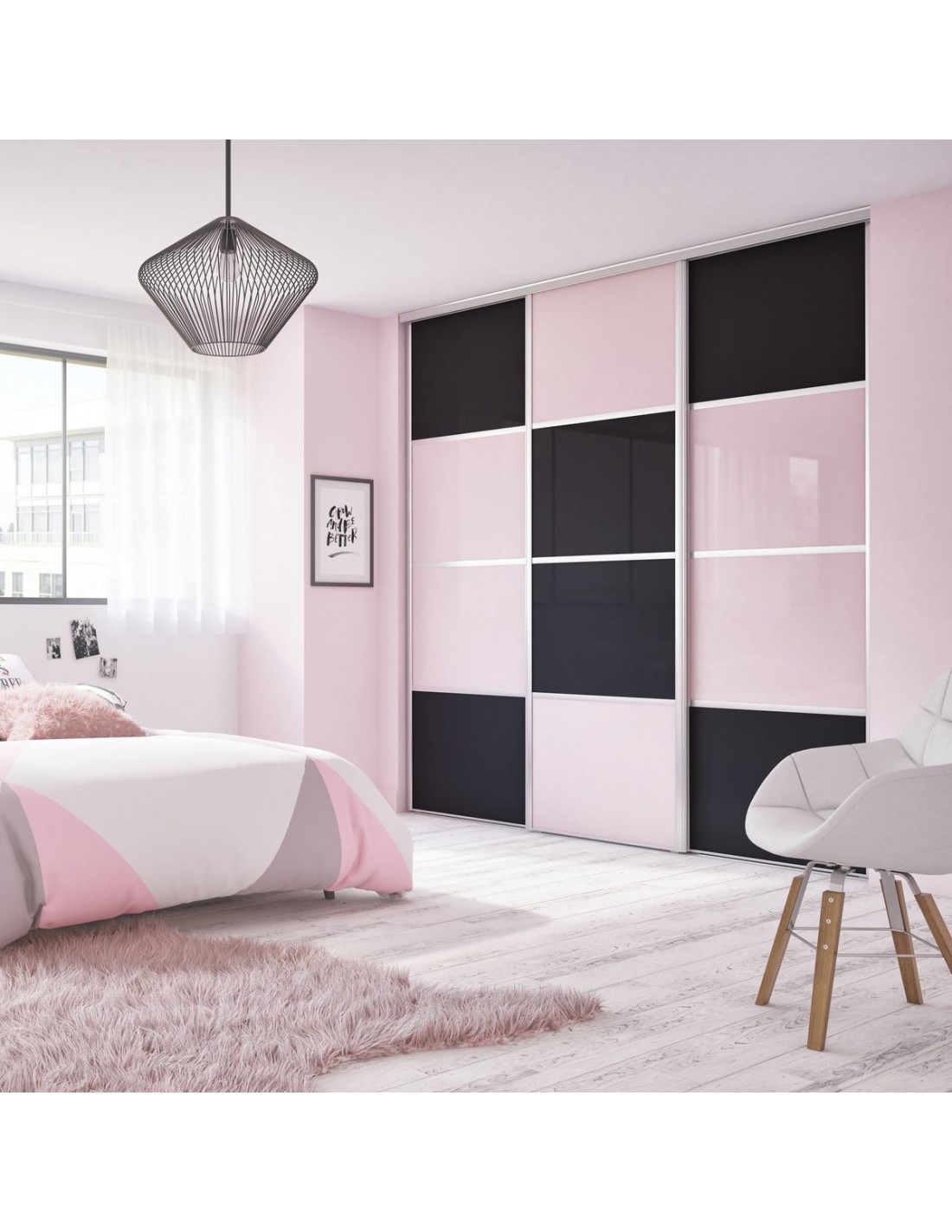 Sydney : Façade de placard coulissante 3 portes verre laqué