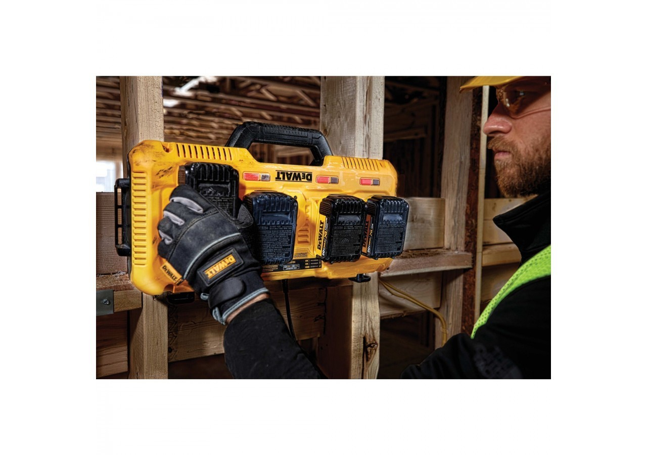- Charges 4 x 9Ah XR FLEXVOLT batteries in 75 minutes and 4 x 12Ah in 100 minutes