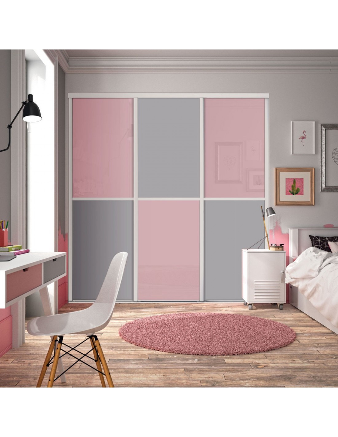 Paris : Façade de placard coulissante 3 portes verre laqué et uni mat