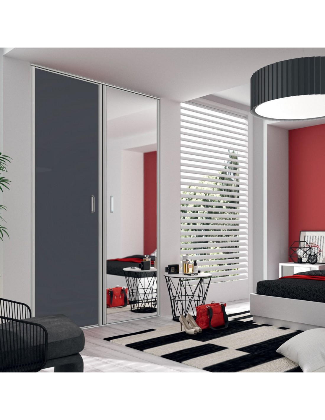 Cha-Cha-Cha : Façade de placard pivotante 2 portes verre laqué et miroir argent