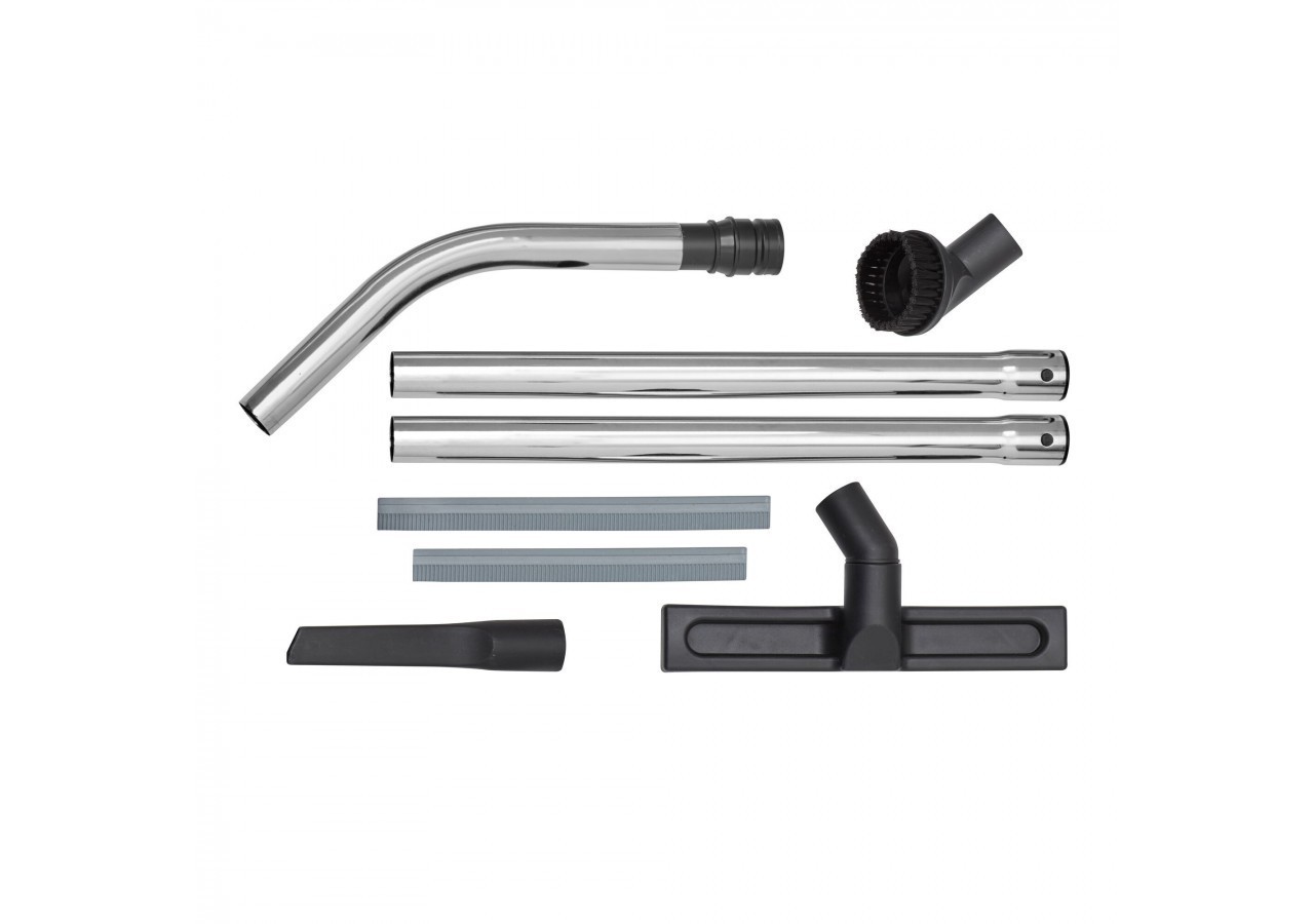 Inclus : Inclus : (2) Aluminum suction pipes - (1) A combination nozzle with interchangeable inserts - (1) A crevice nozzle - (1) A suction brush - (1) An elbow pipe - (1) AirLock Adapter for direct connection to vacuums