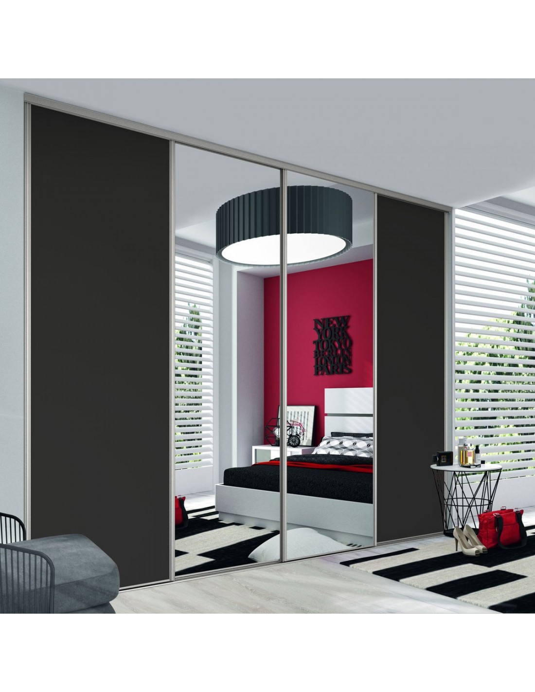 Cha-Cha-Cha : Façade de placard coulissante 4 portes uni mat et miroir argent