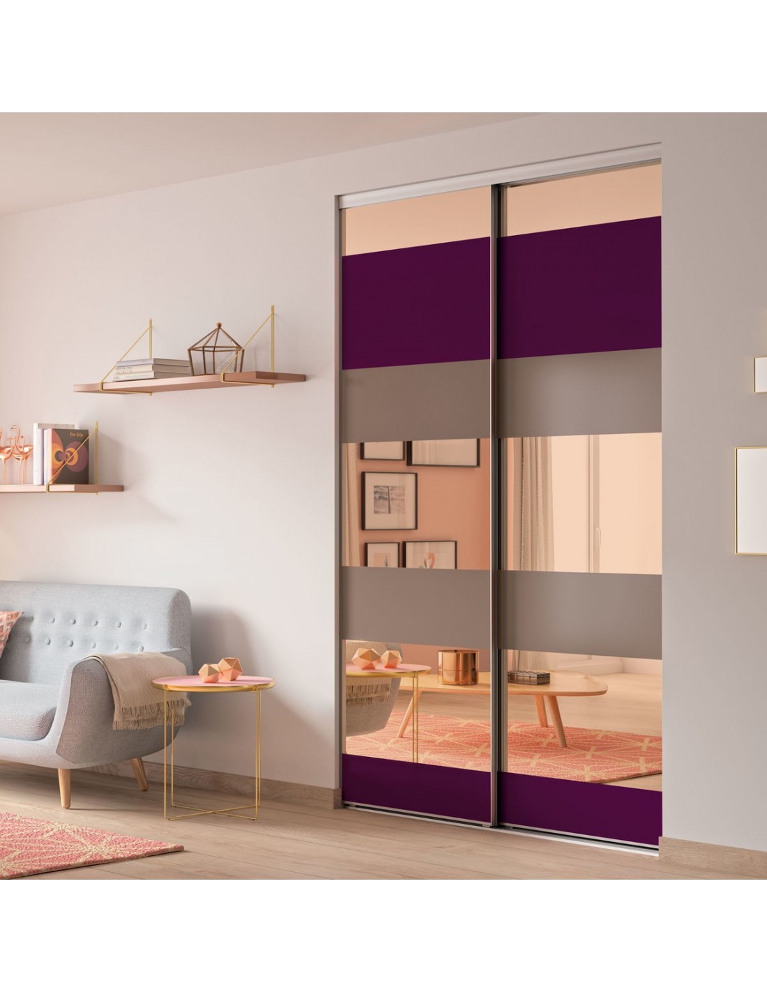 Samantha : Façade de placard coulissante 2 portes verre laqué et miroir bronze