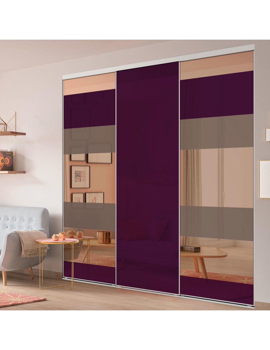 Samantha : Façade de placard coulissante 3 portes verre laqué et miroir bronze