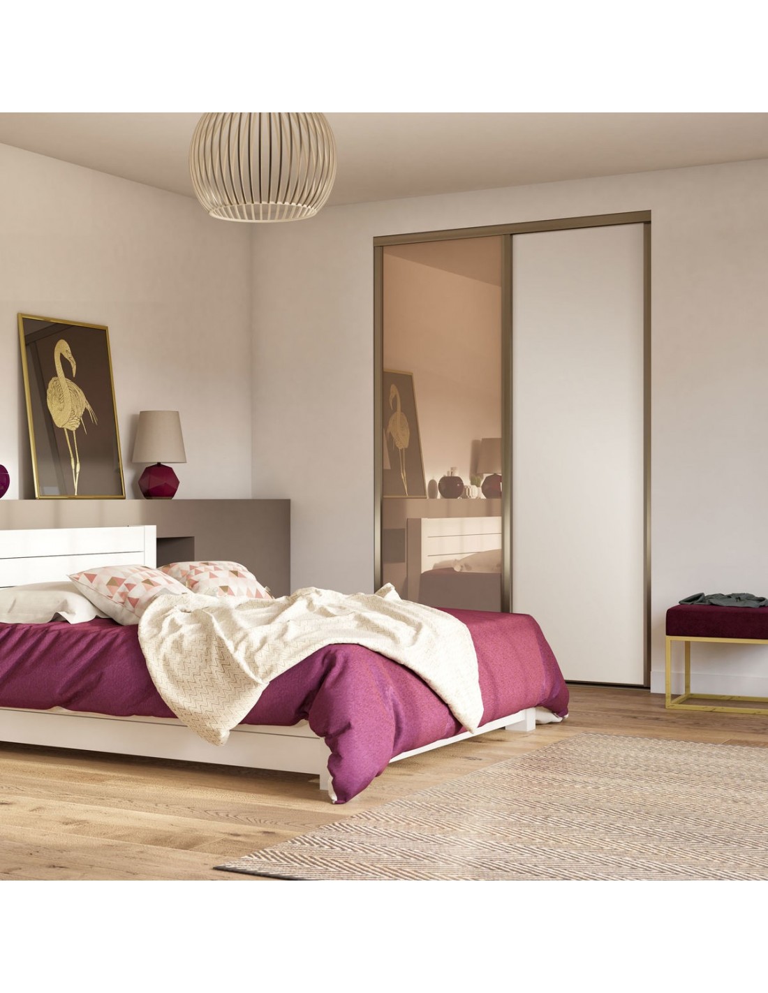 Miranda : Façade de placard coulissante 2 portes uni mat et miroir bronze