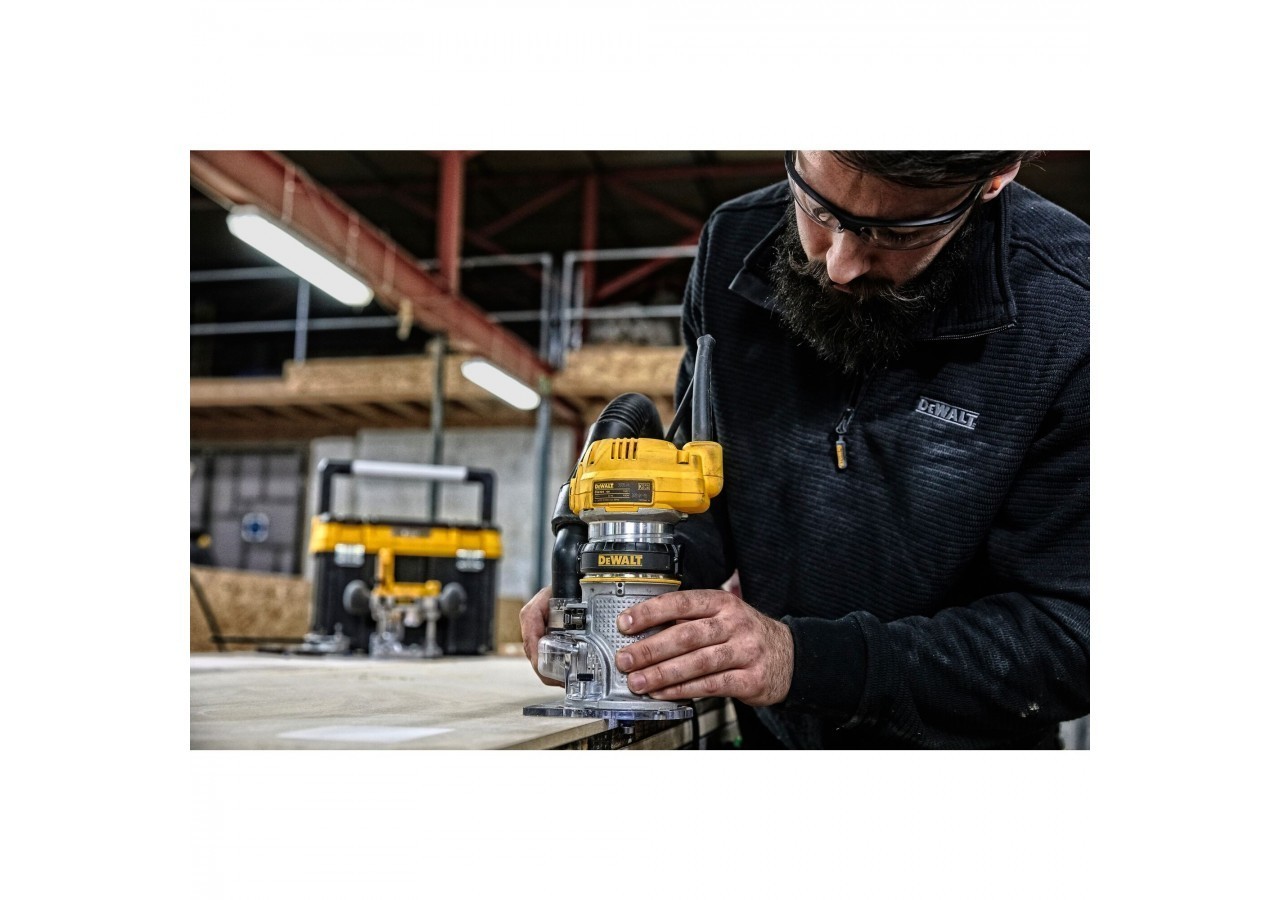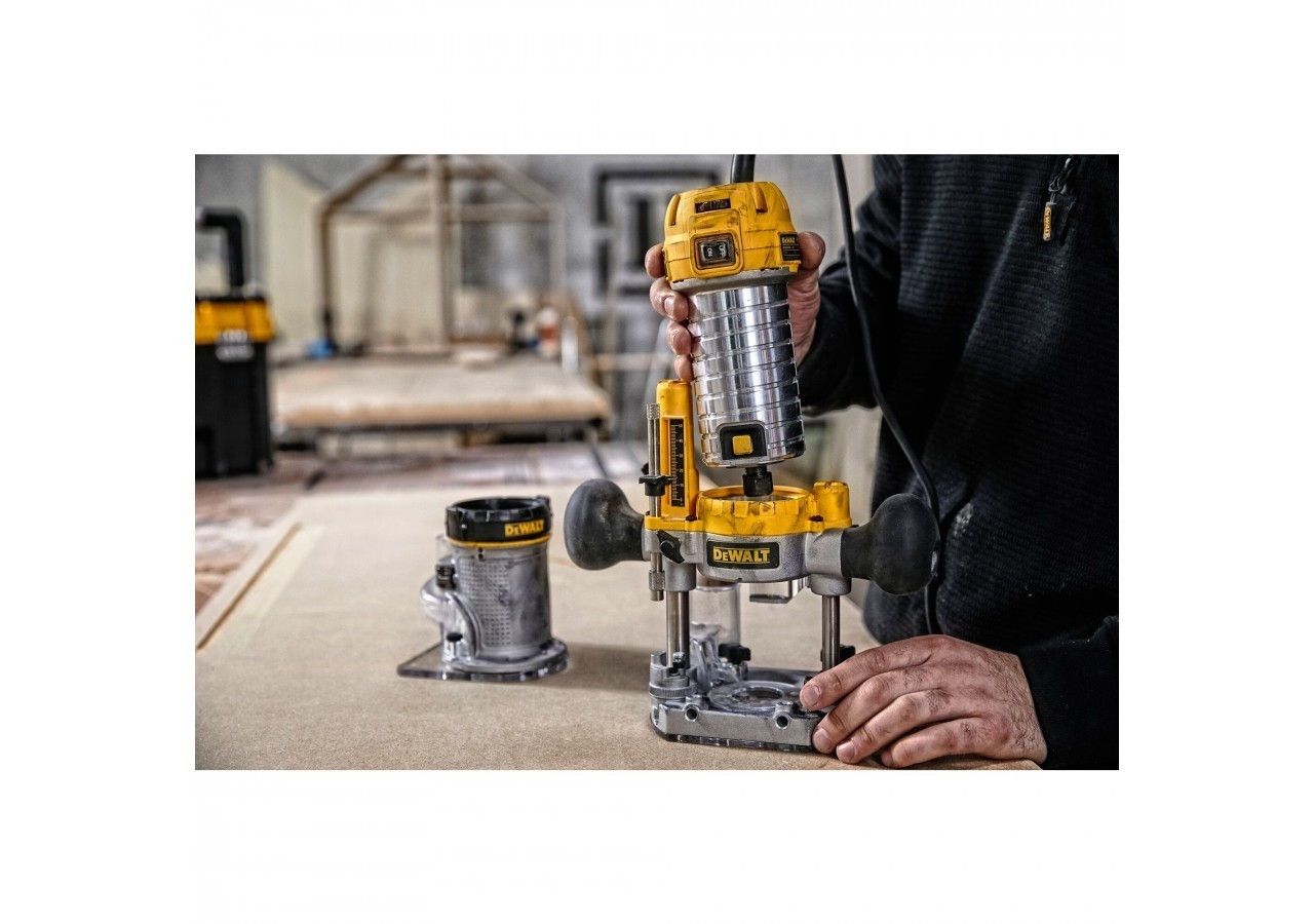 Inclus : Inclus : (1) Pince 8mm - (1) Clé 17mm - (1) Base fixe et plongeante - (2) Adaptateur d'aspiration des poussières pour défonceuse et affleureuse - (2) Guides parallèle - (1) Pointe de centrage - (1) Mallette de transport