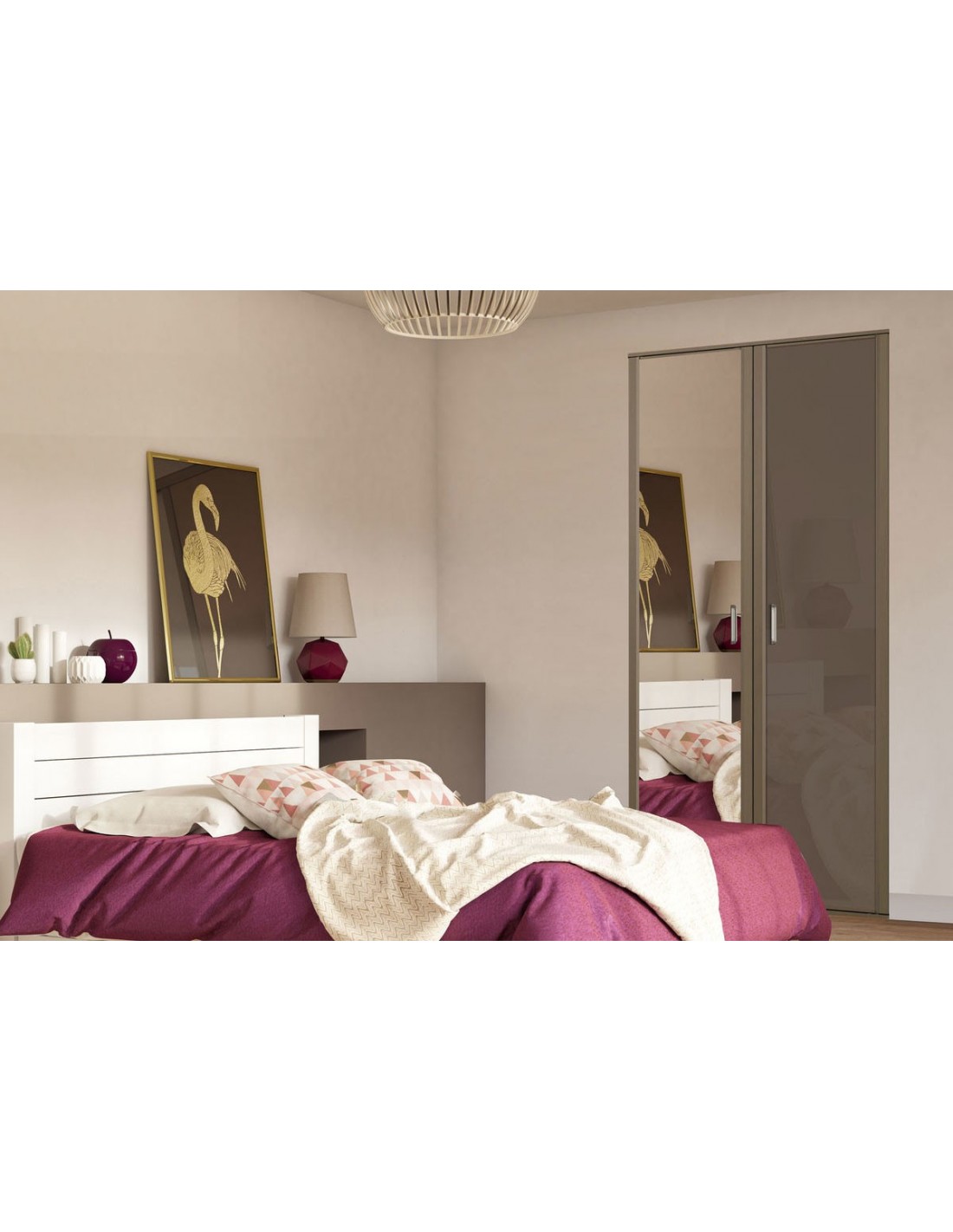 Miranda : Façade de placard pivotante 2 portes verre laqué et miroir bronze