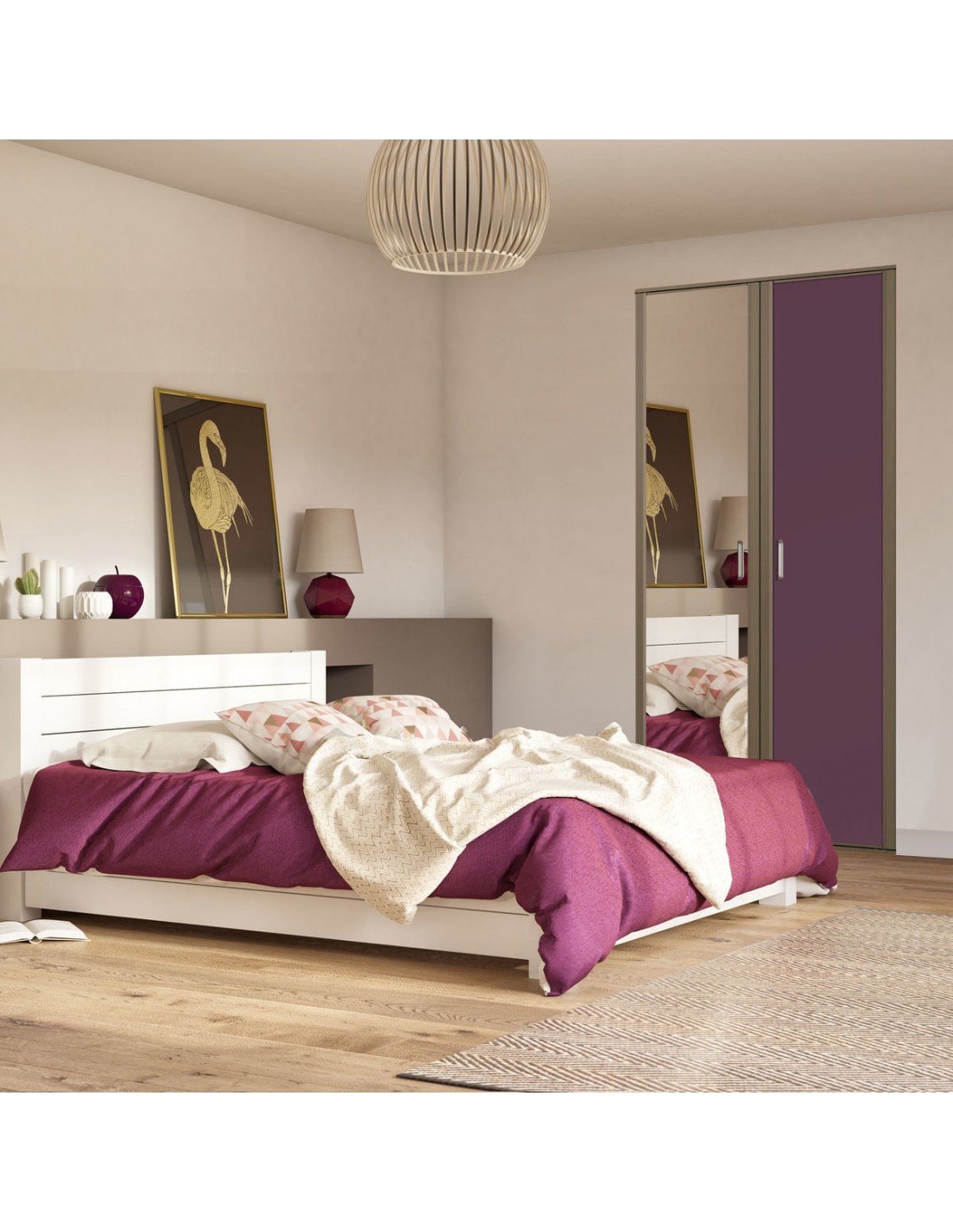 Cette façade de placard est composée de portes pivotantes en mélaminé et miroir bronze.