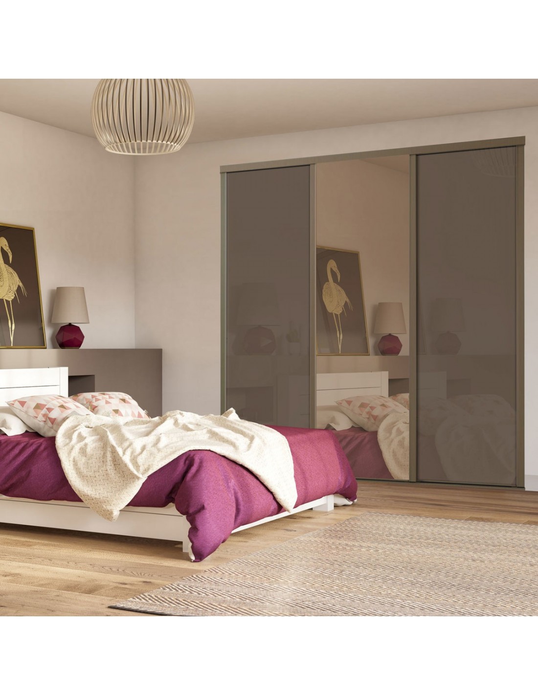 Miranda : Façade de placard coulissante 3 portes verre laqué et miroir bronze