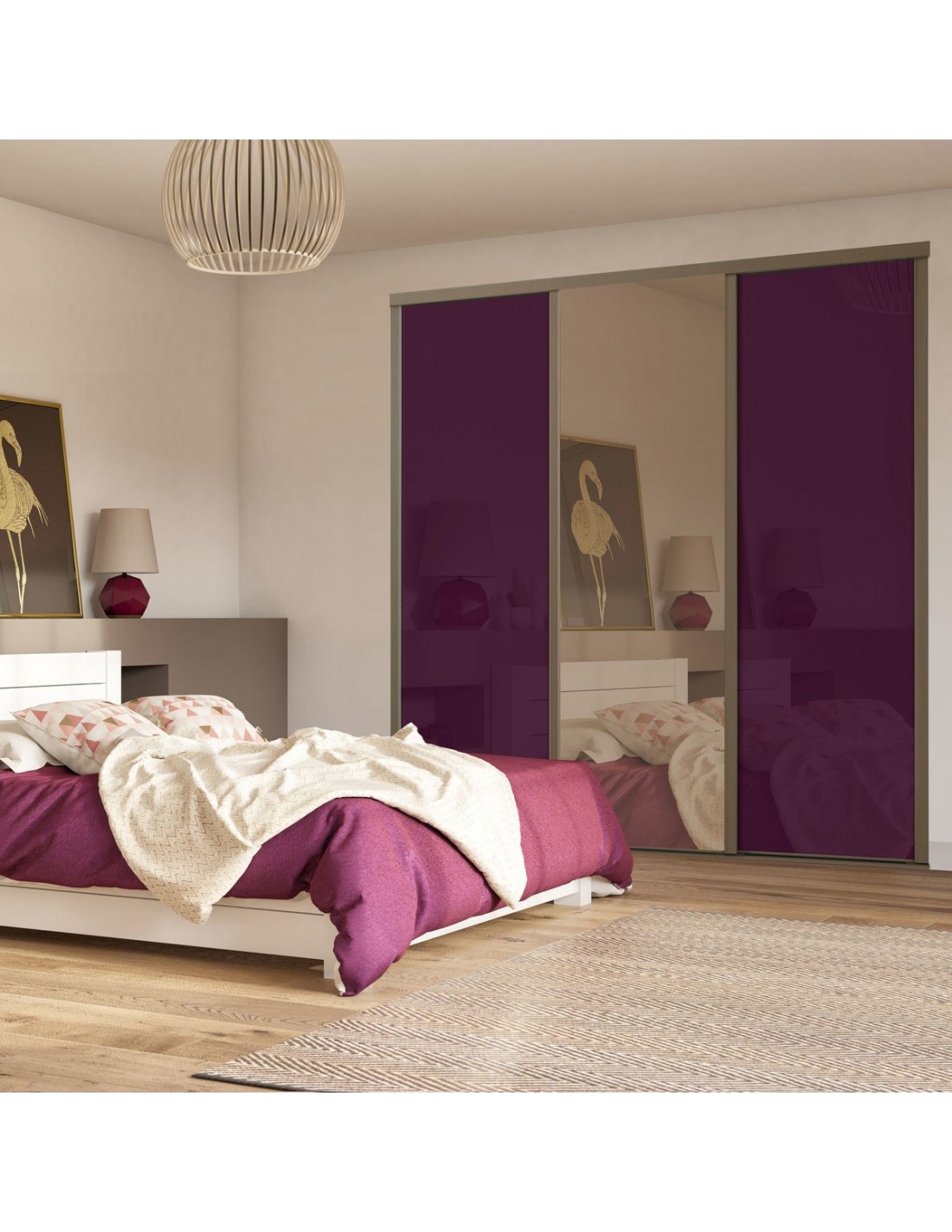 Miranda : Façade de placard coulissante 3 portes verre laqué et miroir bronze