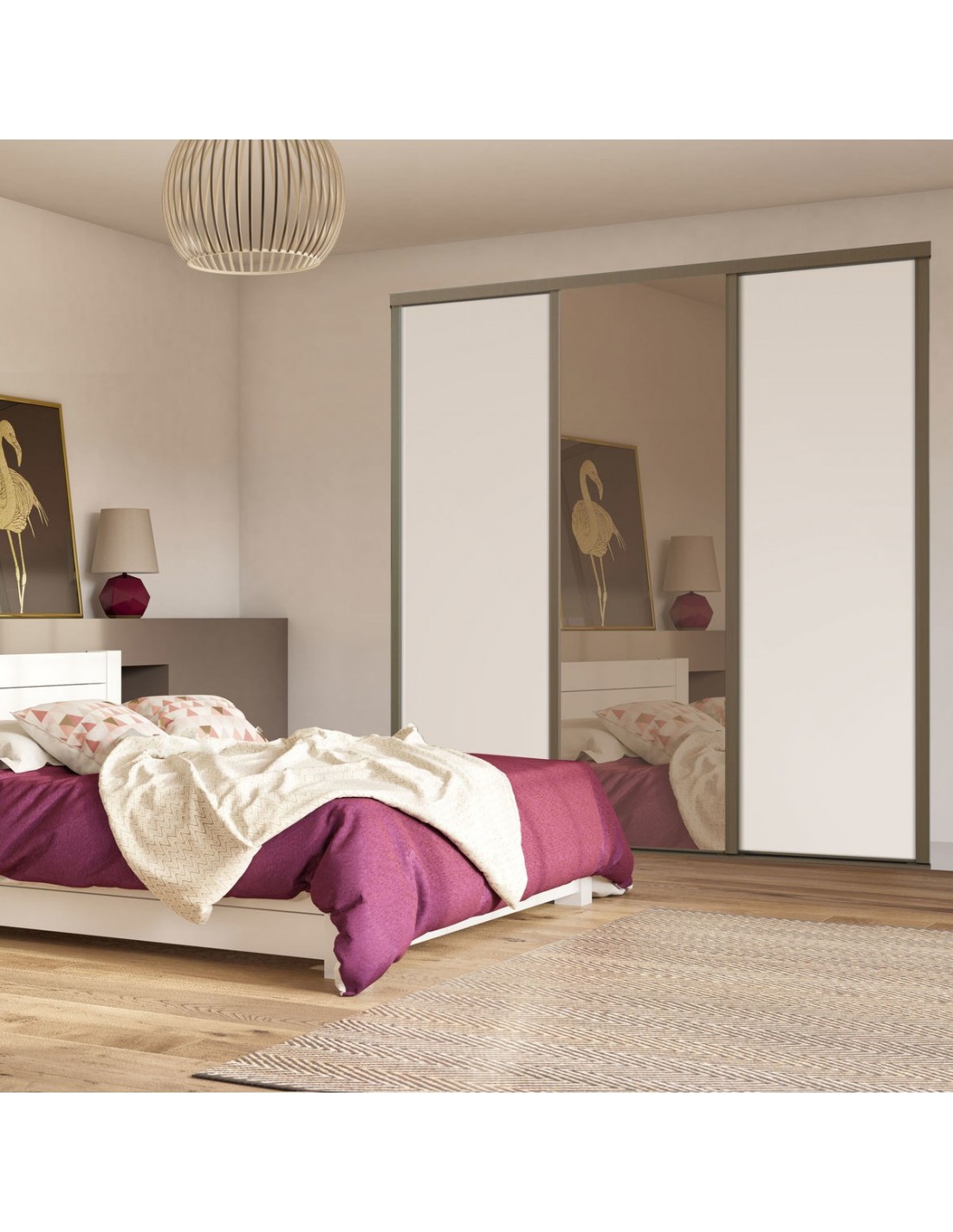 Miranda : Façade de placard coulissante 3 portes uni mat et miroir bronze