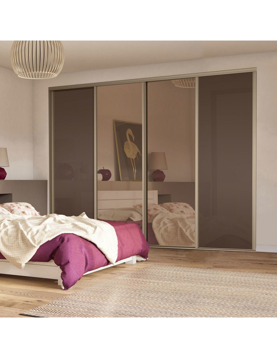 Miranda : Façade de placard coulissante 4 portes verre laqué et miroir bronze