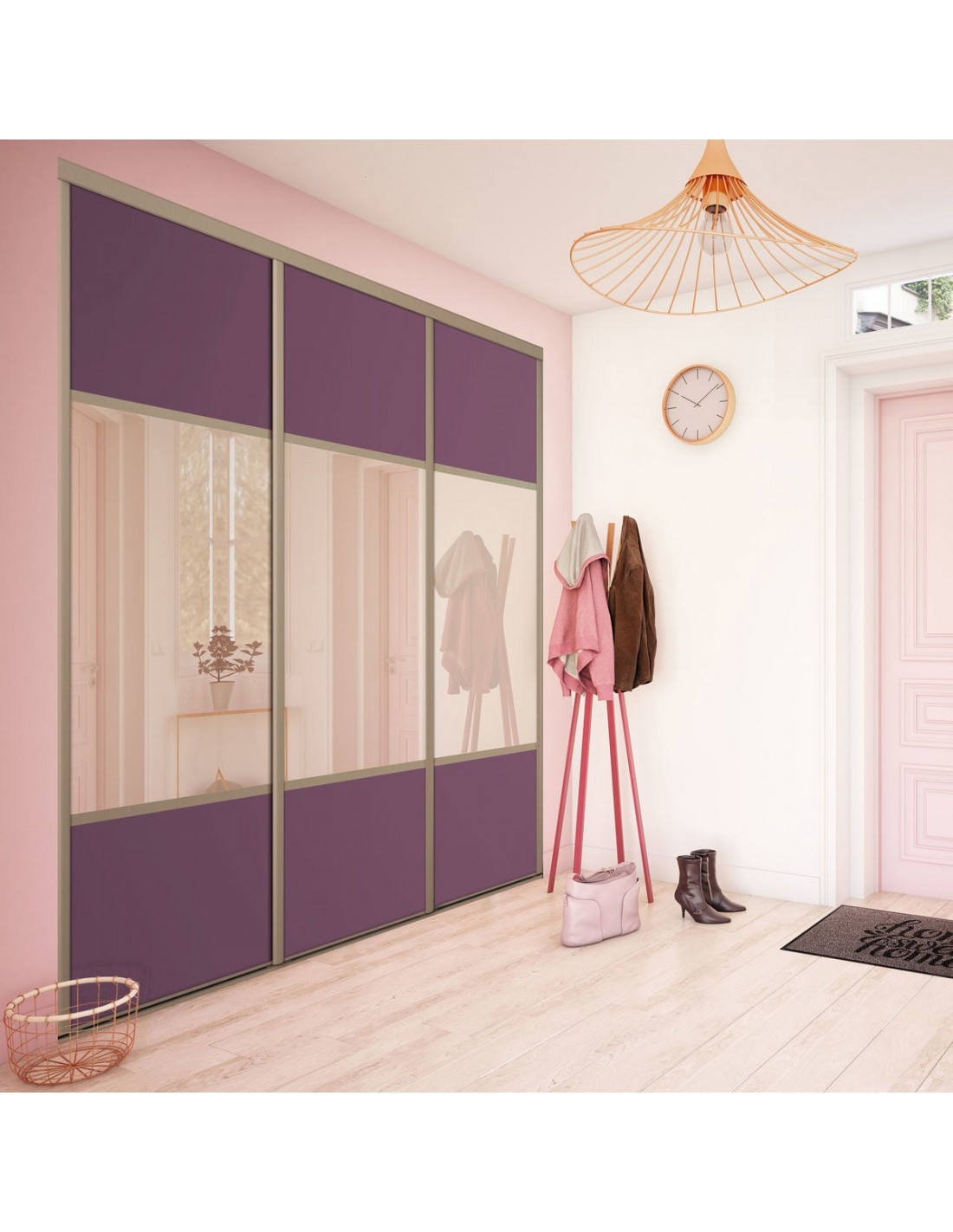 Carrie : Façade de placard coulissante 3 portes uni mat et miroir bronze