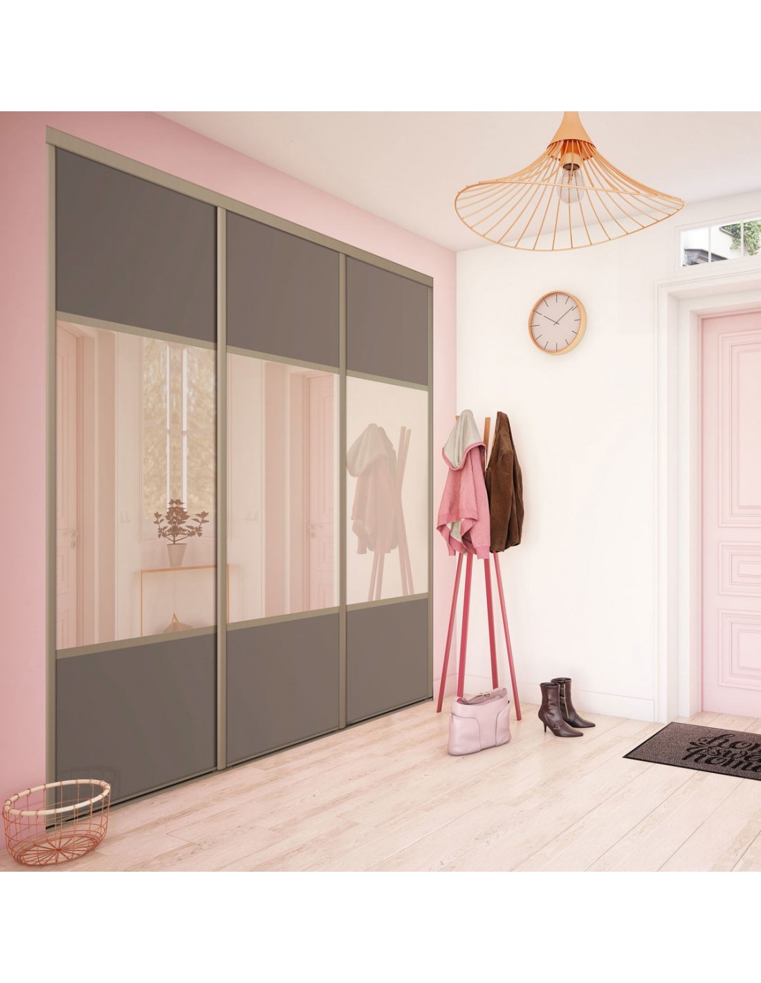 Carrie : Façade de placard coulissante 3 portes uni mat et miroir bronze