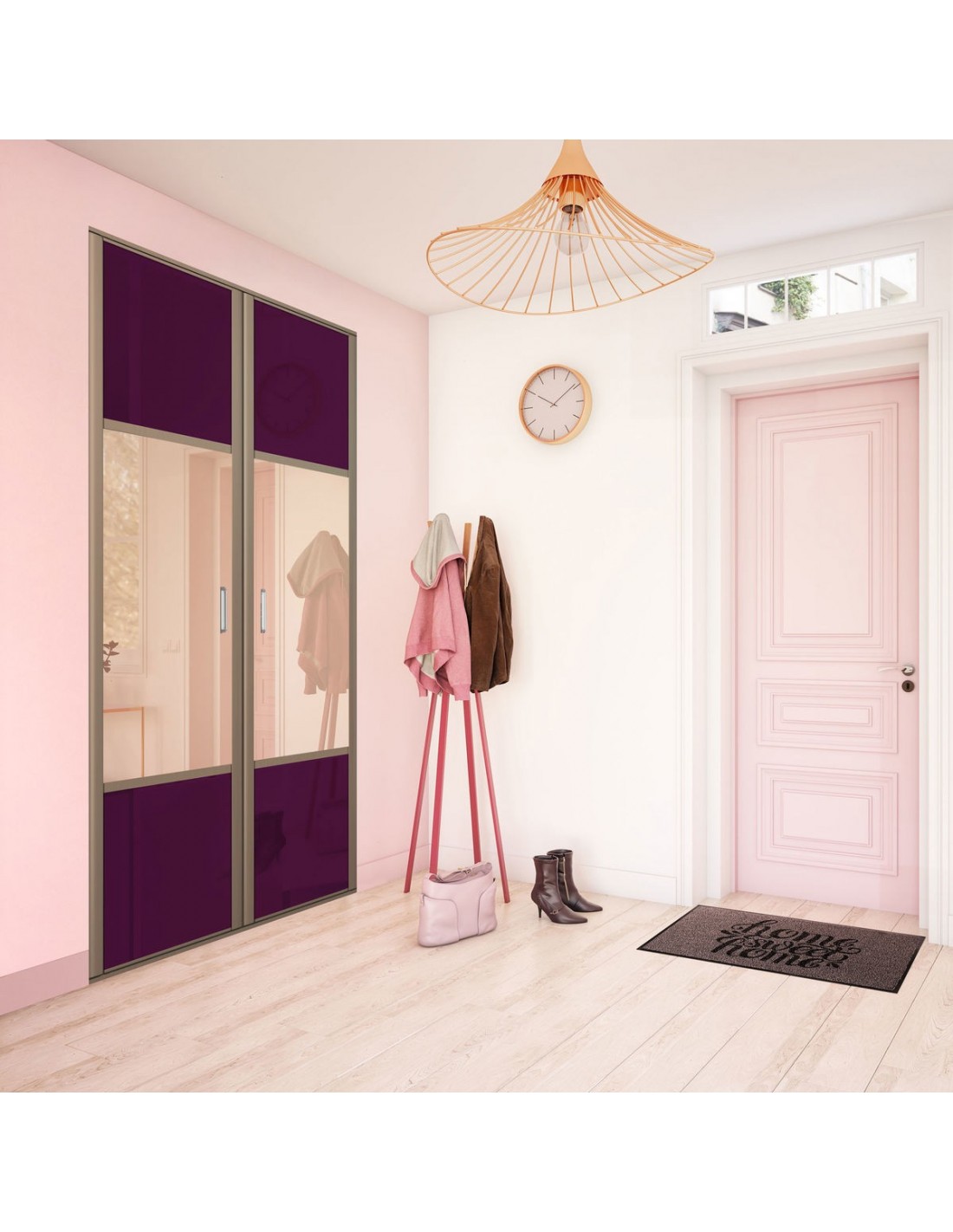Carrie : Façade de placard pivotante 2 portes verre laqué et miroir bronze
