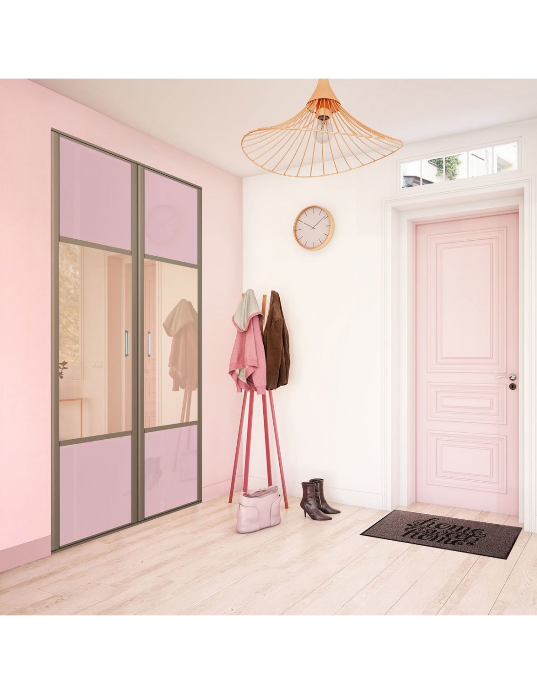 Carrie : Façade de placard pivotante 2 portes verre laqué et miroir bronze