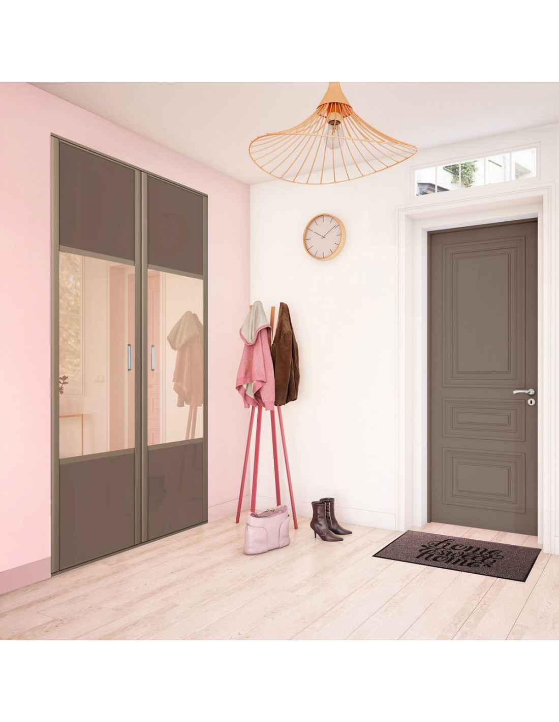 Carrie : Façade de placard pivotante 2 portes verre laqué et miroir bronze