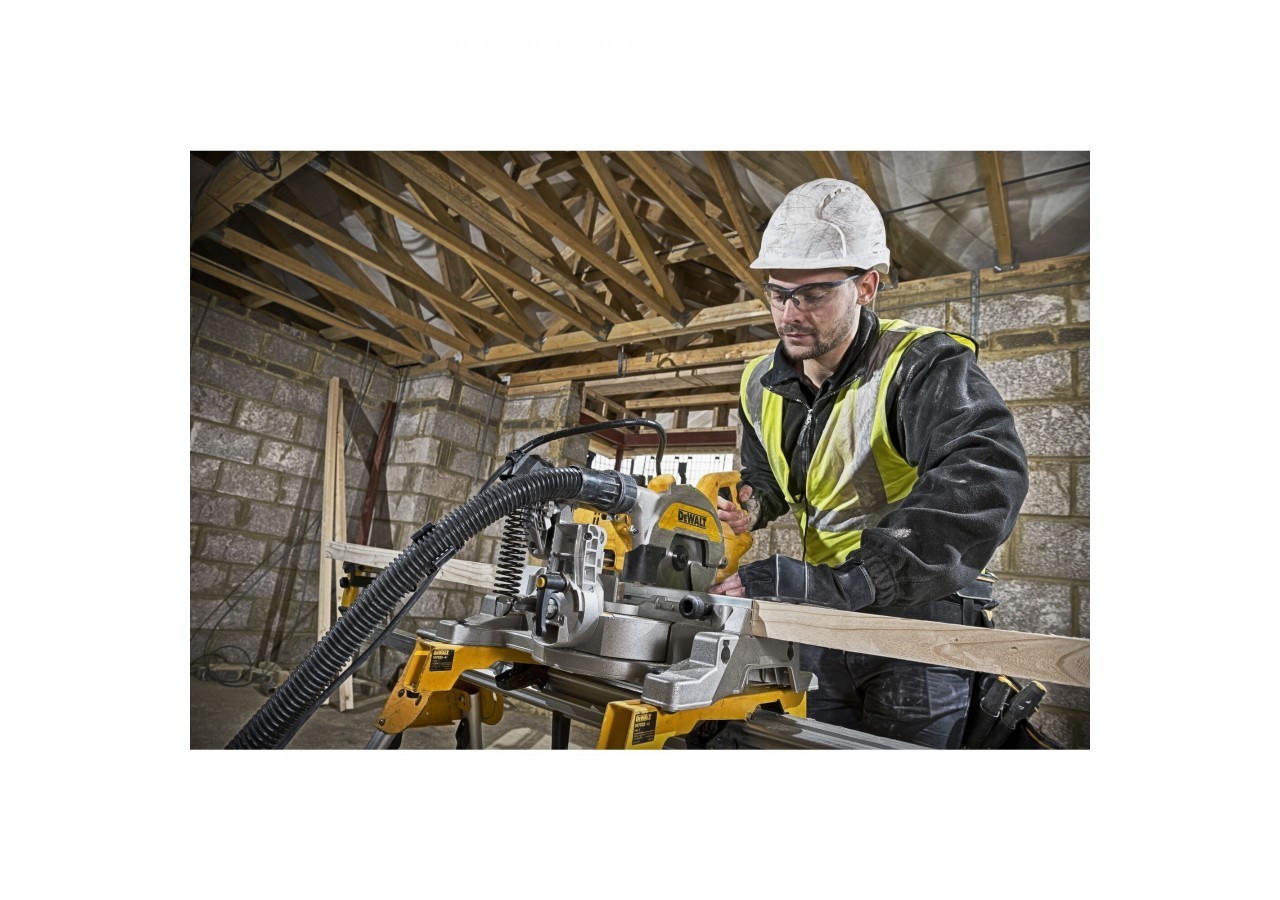 - Le verrouillage du coulissement de la tête de scie permet de réaliser des coupes de petites pièces et de transporter la machine en toute sécurité
